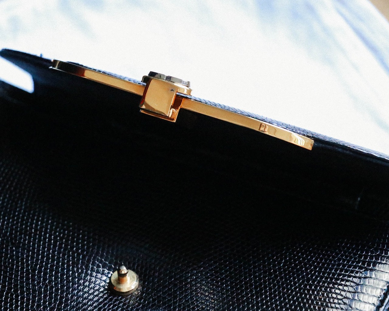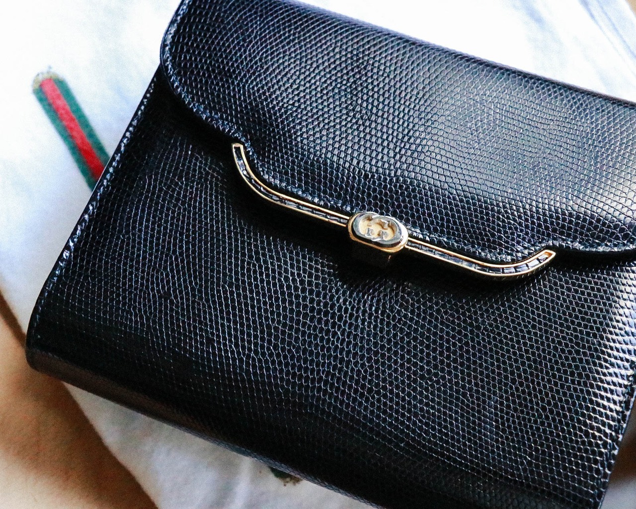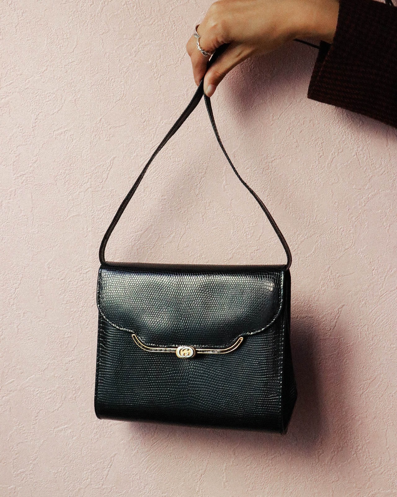 クラシカルな印象のGUCCIのブラックショルダーバッグです。