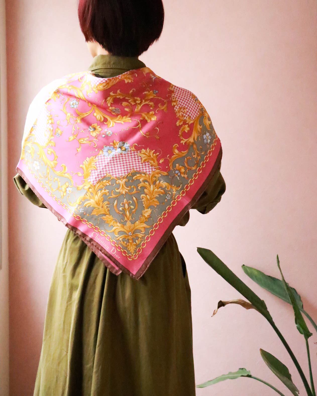 ピンクをベースにエレガントに仕上げられた一枚はコーディネートに