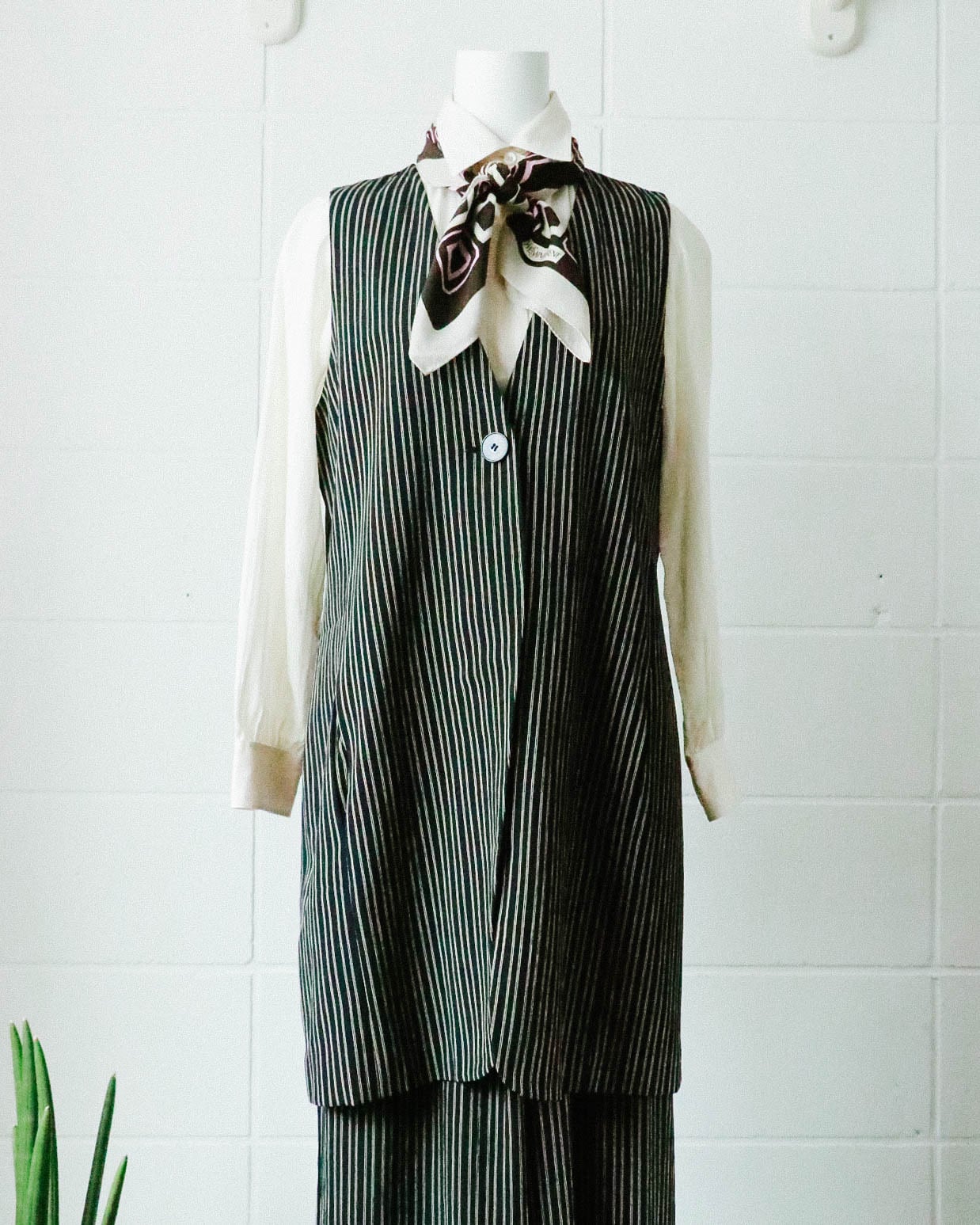 グレーとブラウンベースに可愛いブロックプリントのスカーフはサンローランのヴィンテージ