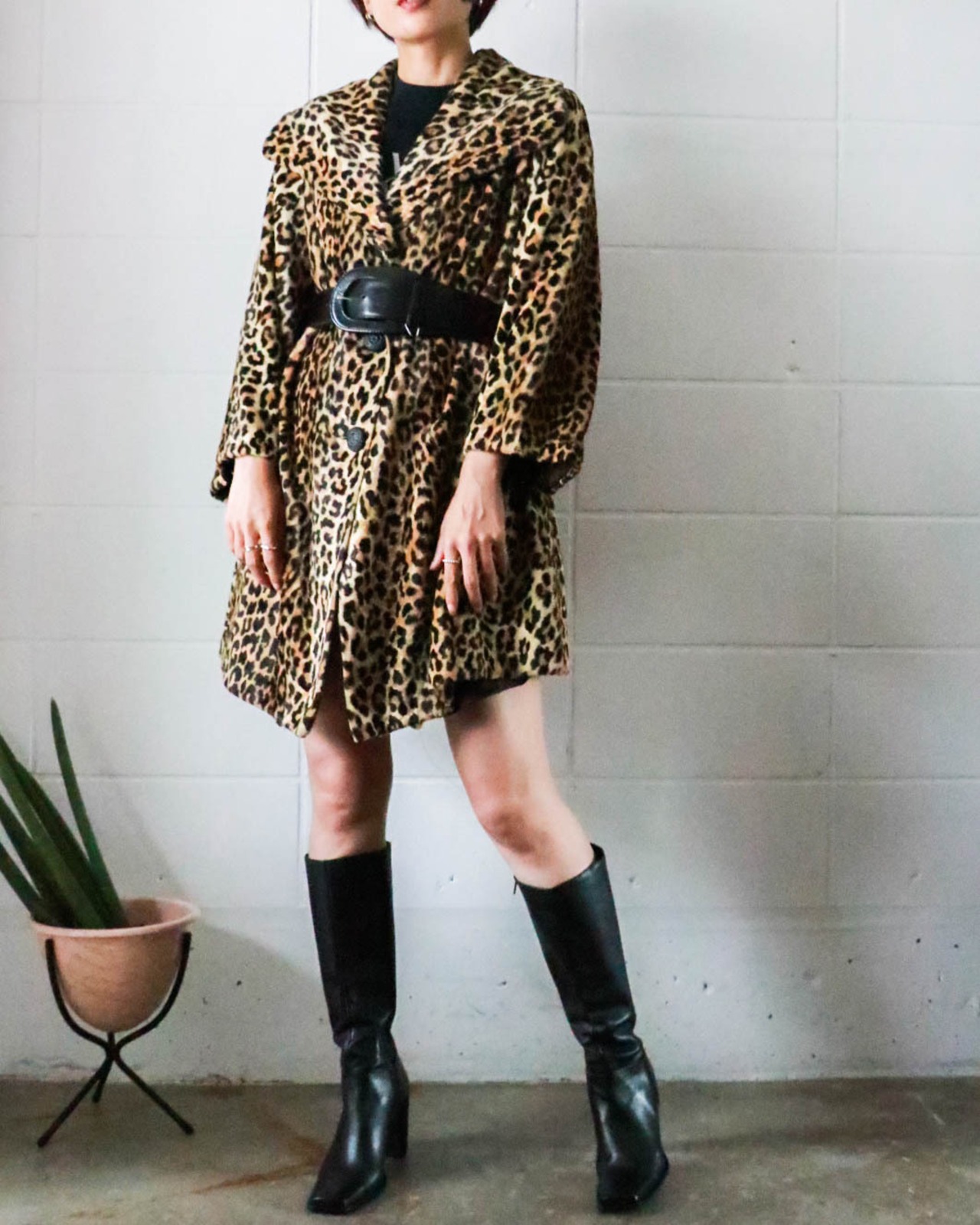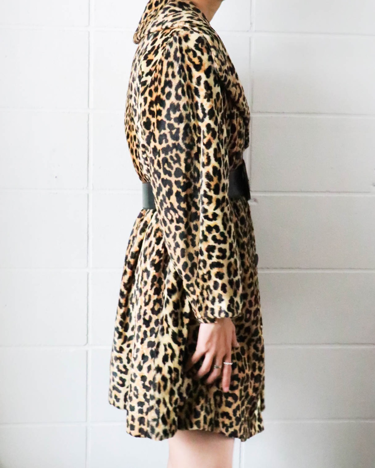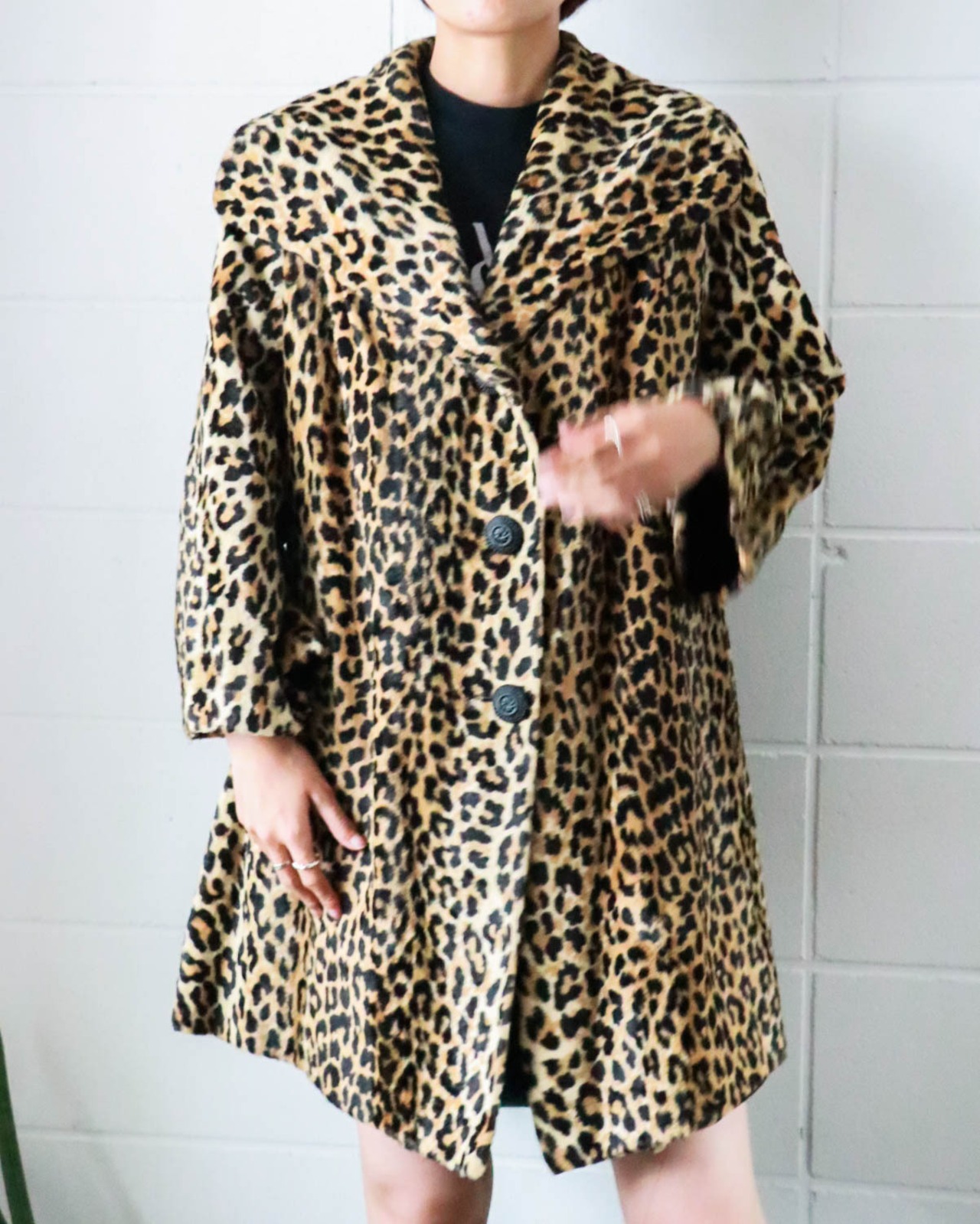 時代ならではのビッグボタンにすっきりしたAライン。デザイン力に加えて暖かさも兼ね揃えた素晴らしいコートです。毎シーズン大人気のレオパード柄は、カジュアル・フェミニン・センシュアルと意外にも様々な着こなしで活躍するのでおすすめの一着です。