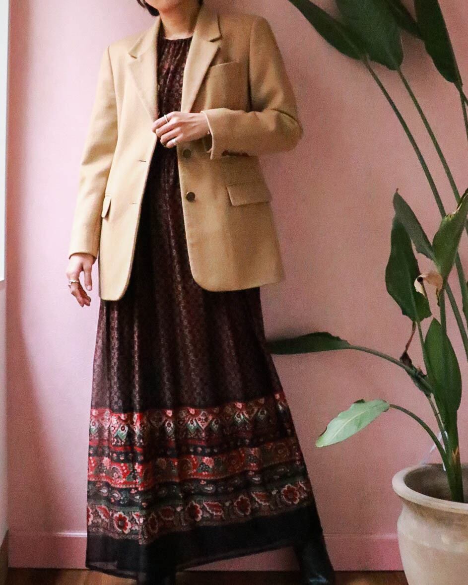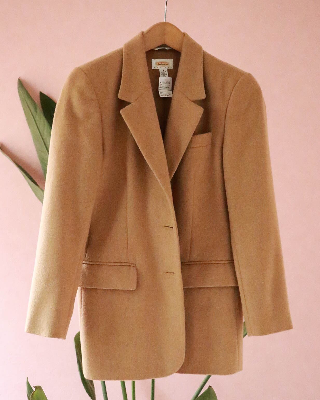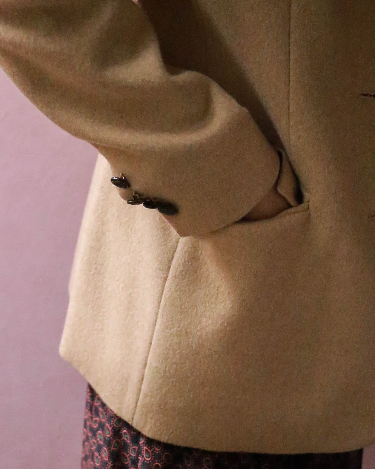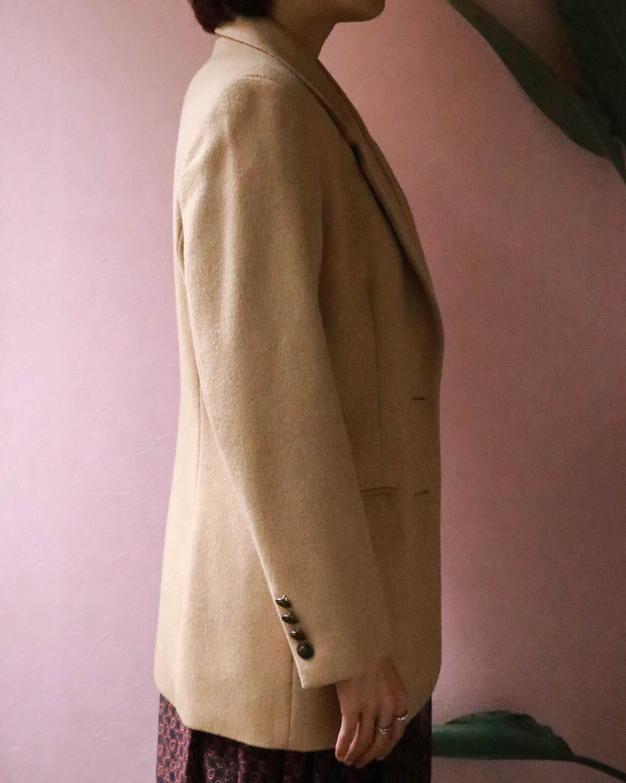 高級素材キャメルヘアー(ラクダ毛)を使用したジャケットはイタリア製。