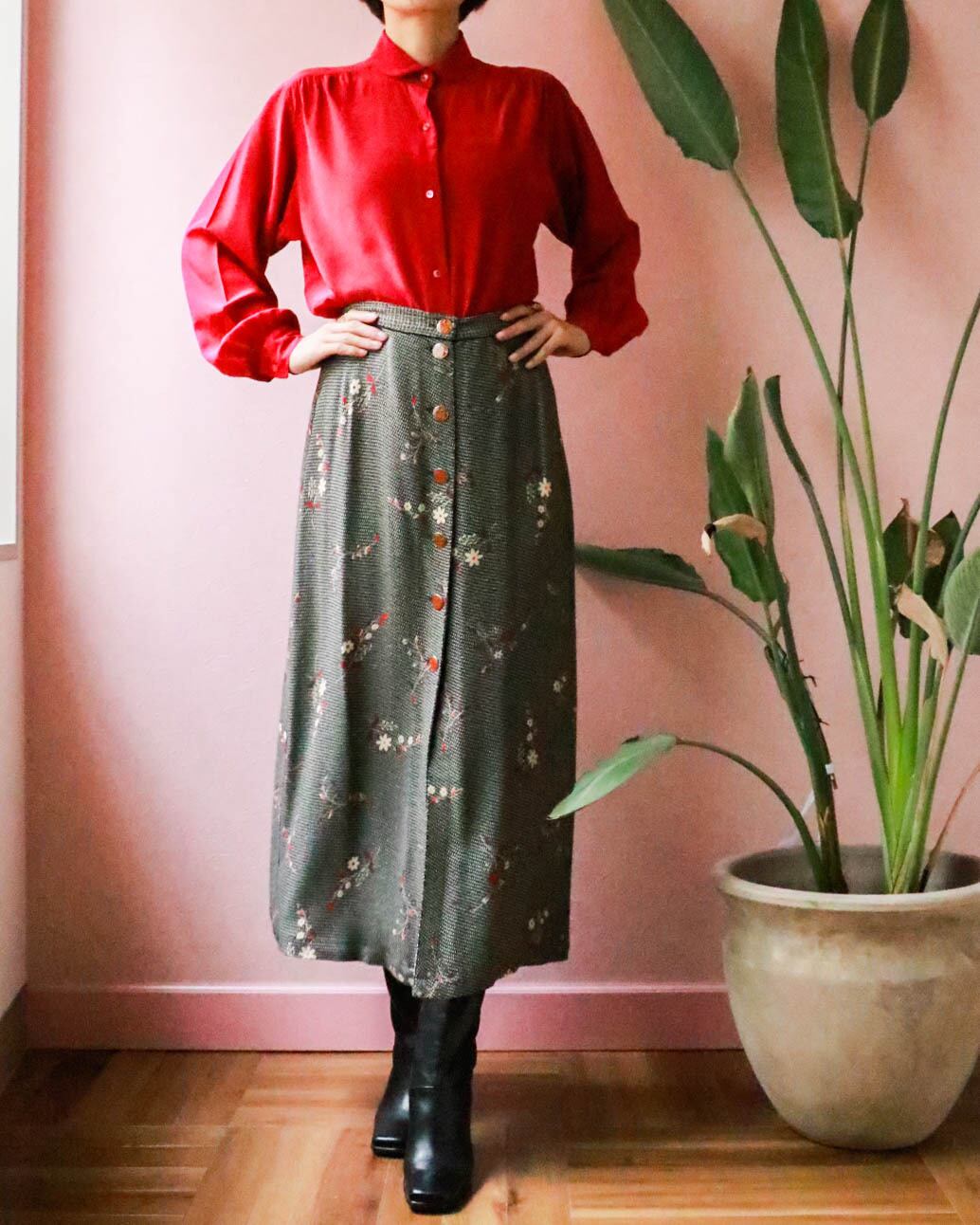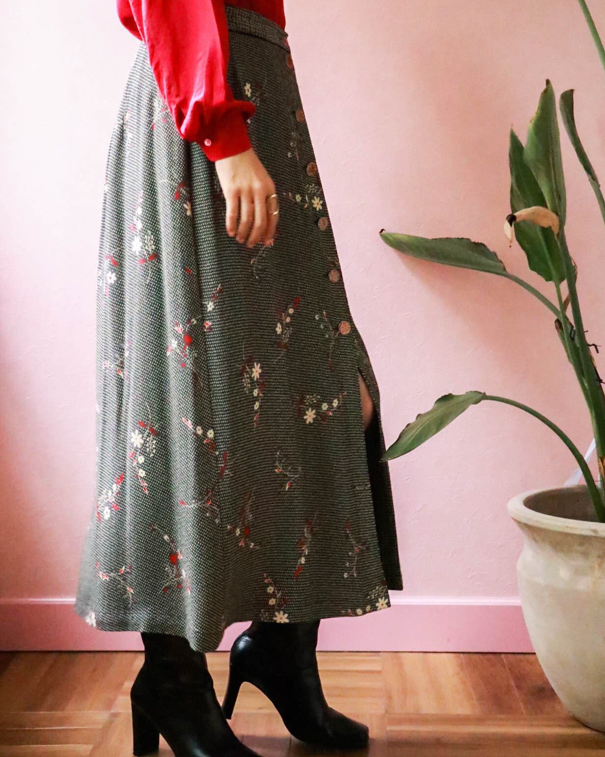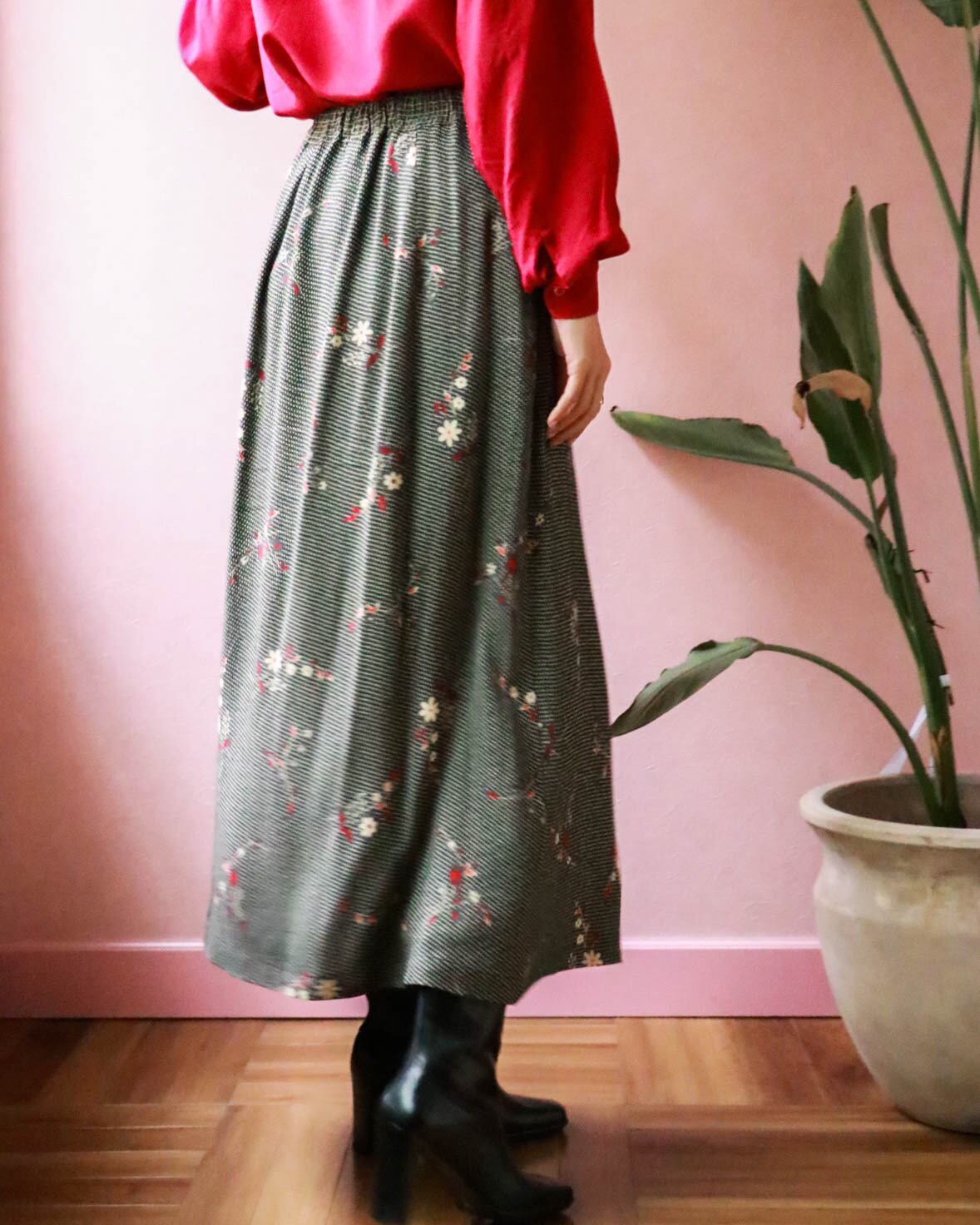 ノスタルジックな花々が咲き誇るこちらのスカートは、1970年代のもの。