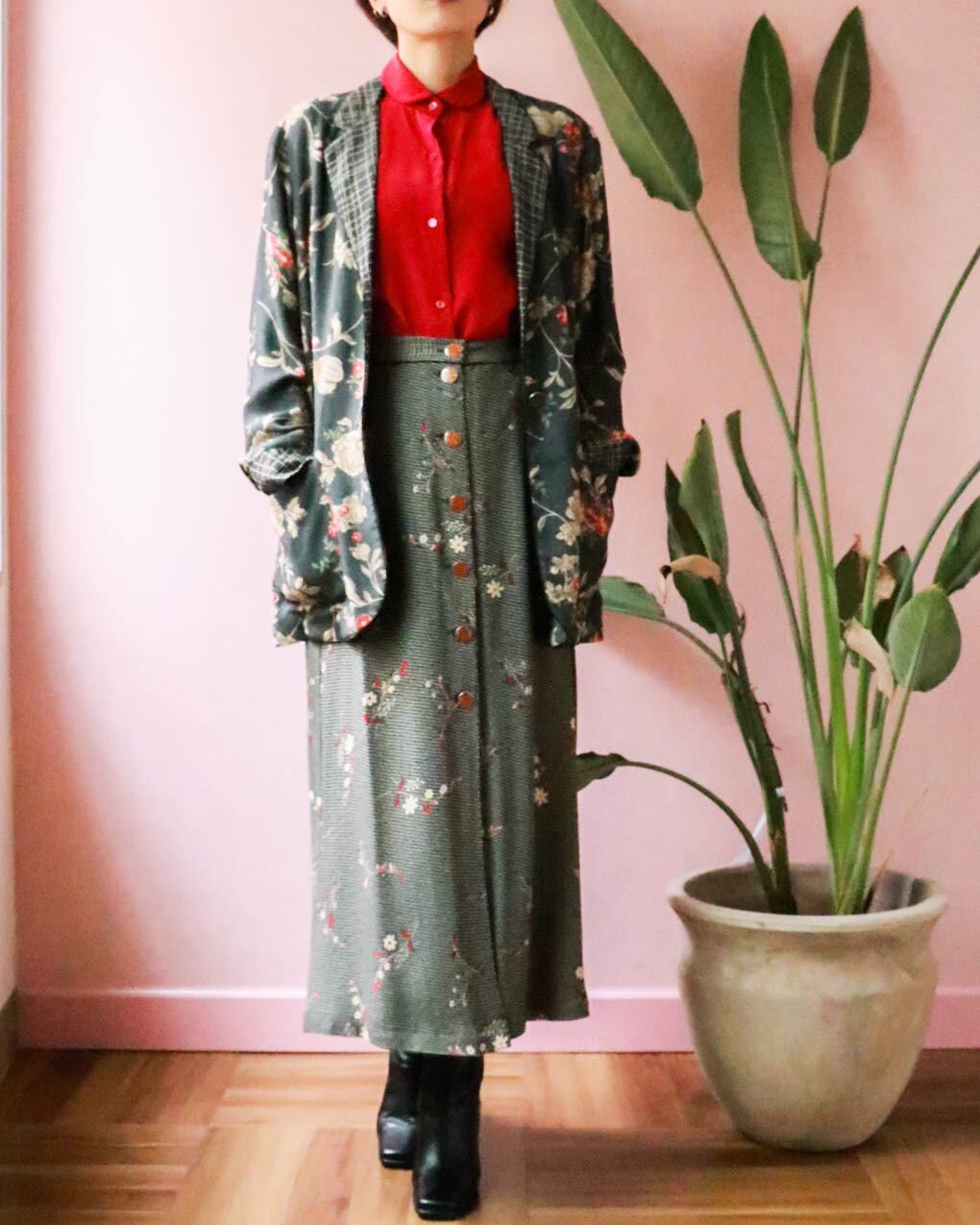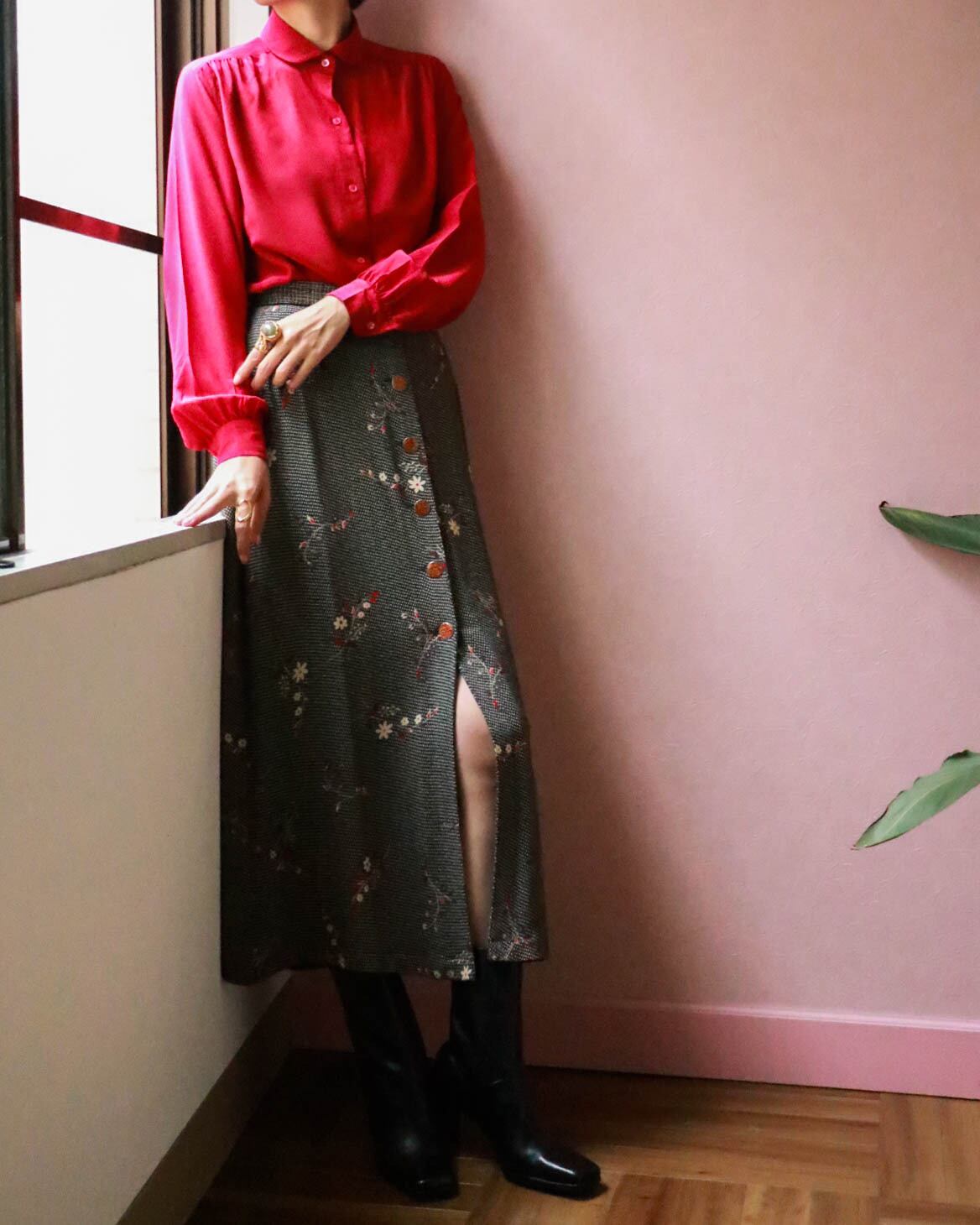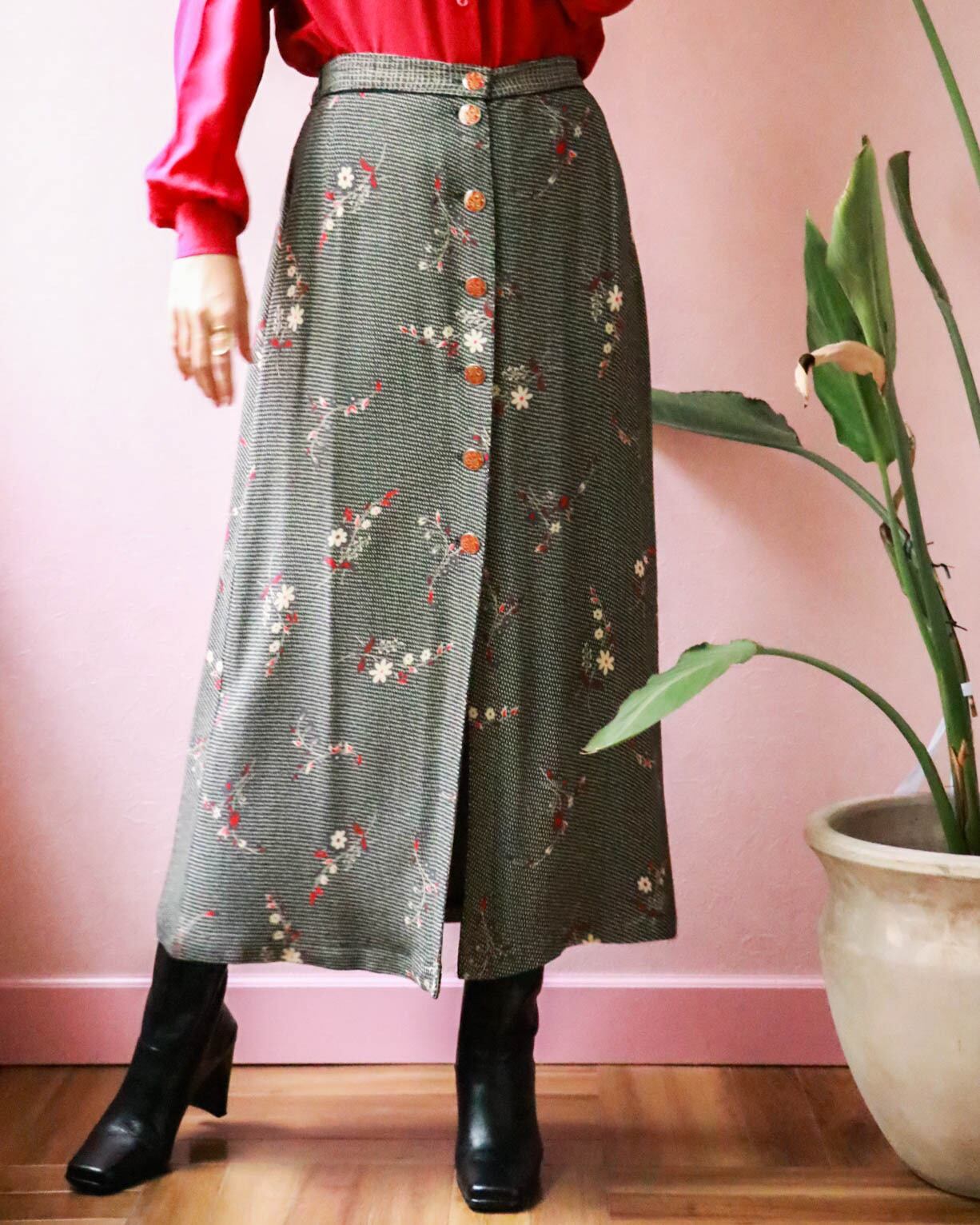 ノスタルジックな花々が咲き誇るこちらのスカートは、1970年代のもの。