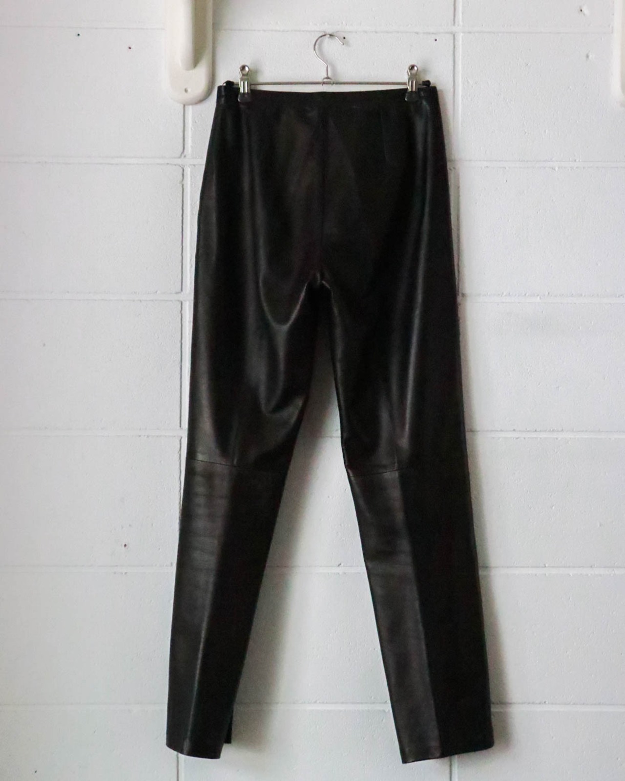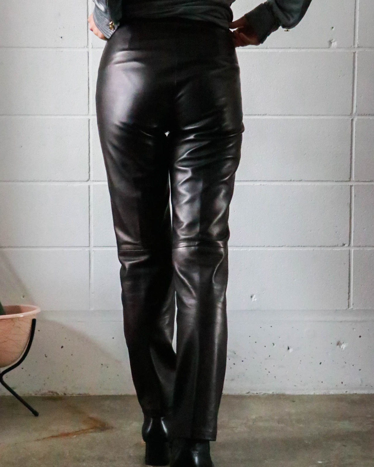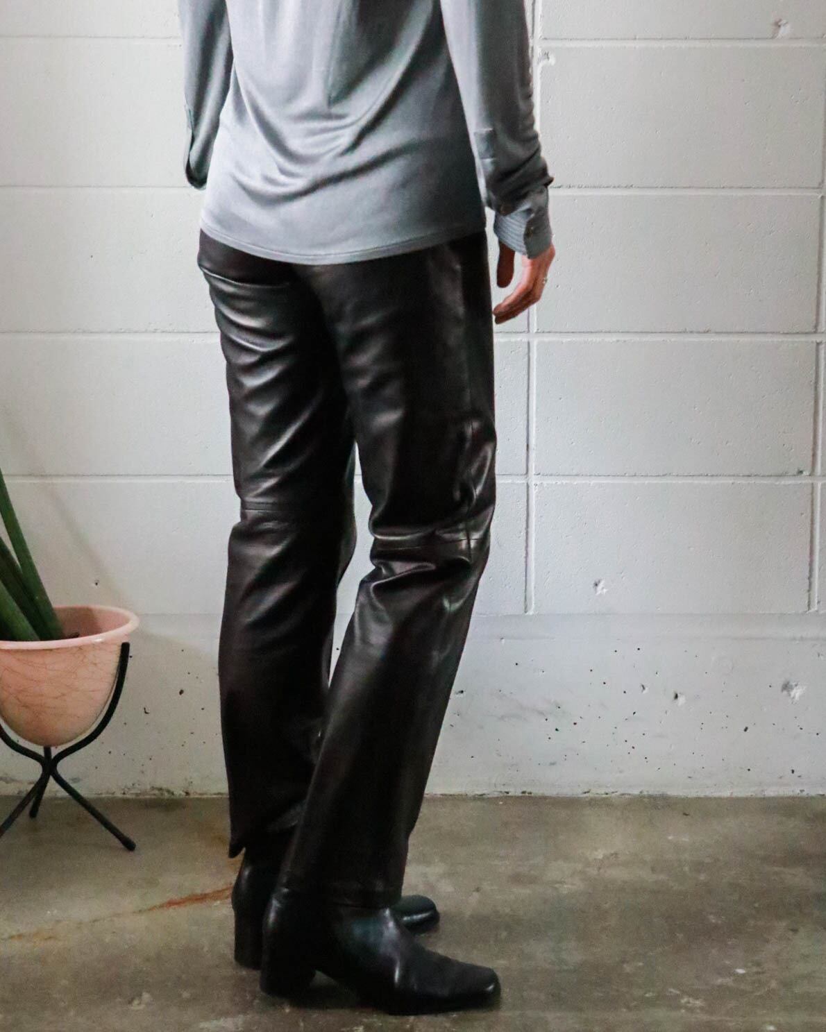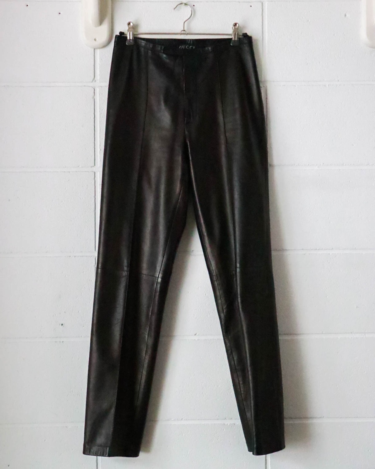 一点投入で上級者コーデが完成するこちらのレザーパンツは、GUCCIのもの。