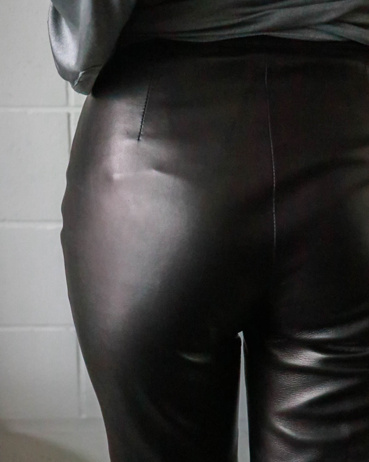 馴染みの良い柔らかなブラックカラーのリアルレザーで、組み合わせしやすくレザーボトムに挑戦したい方にもおススメ。