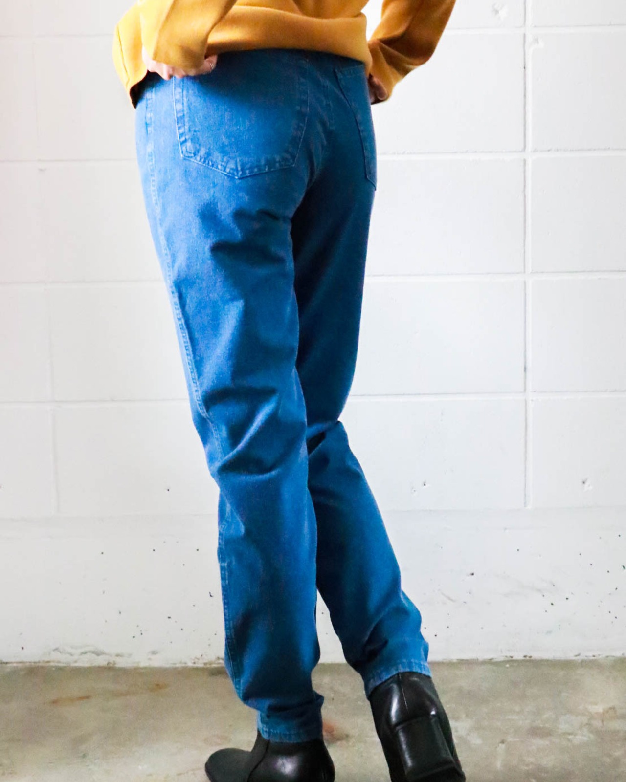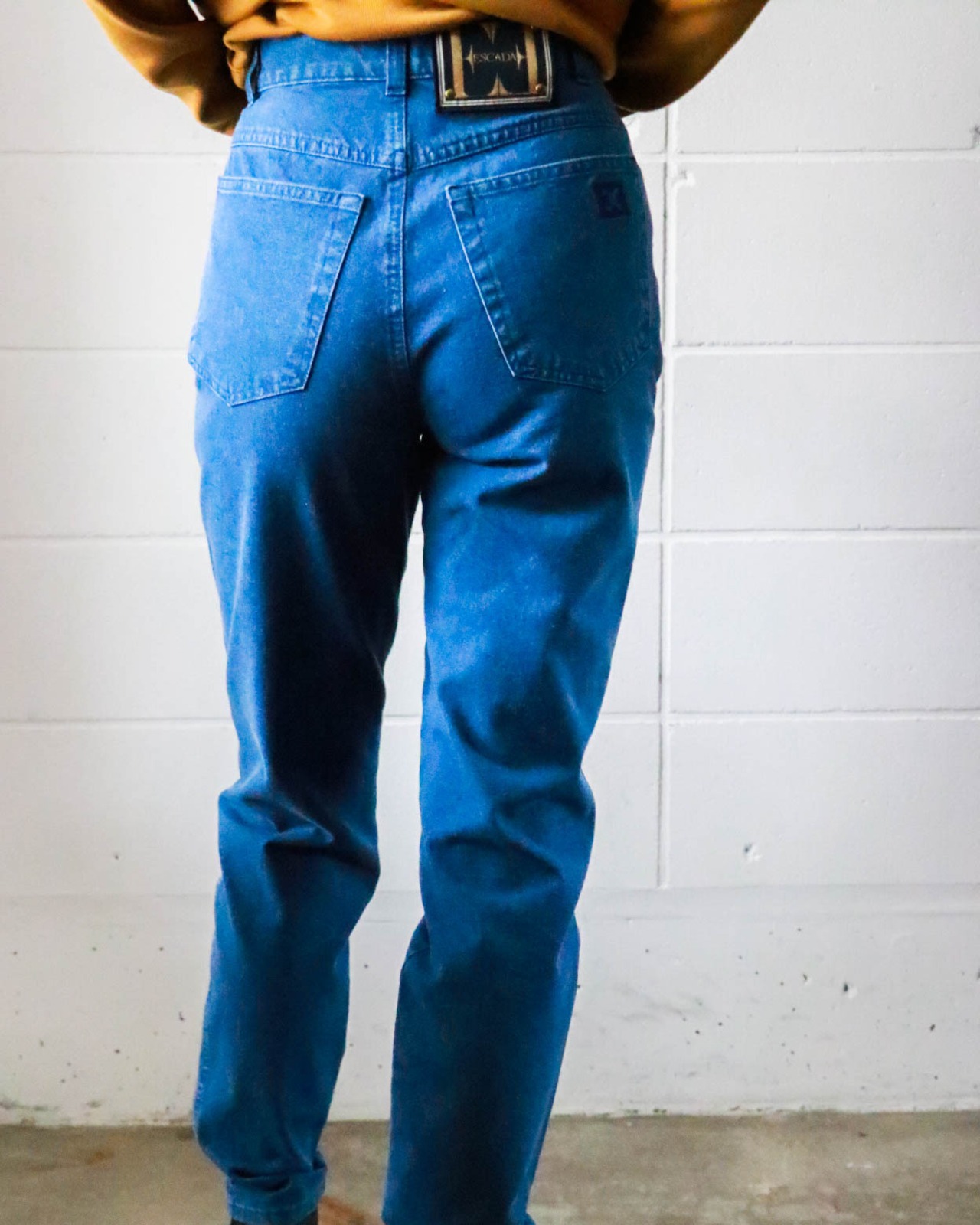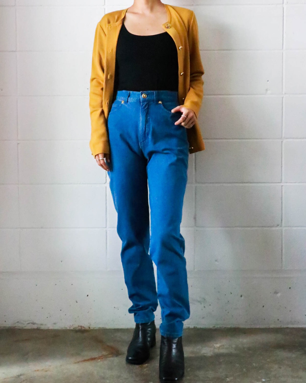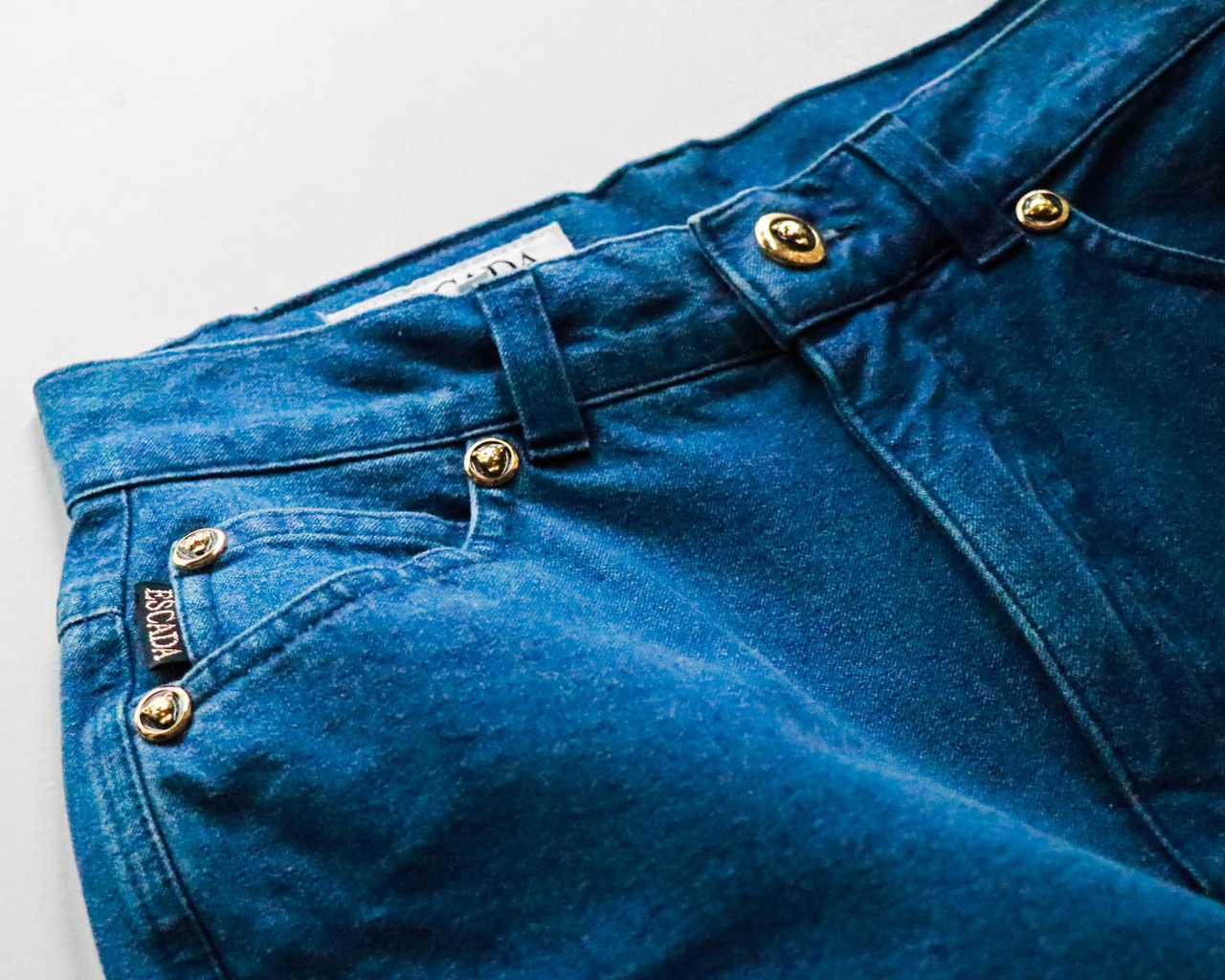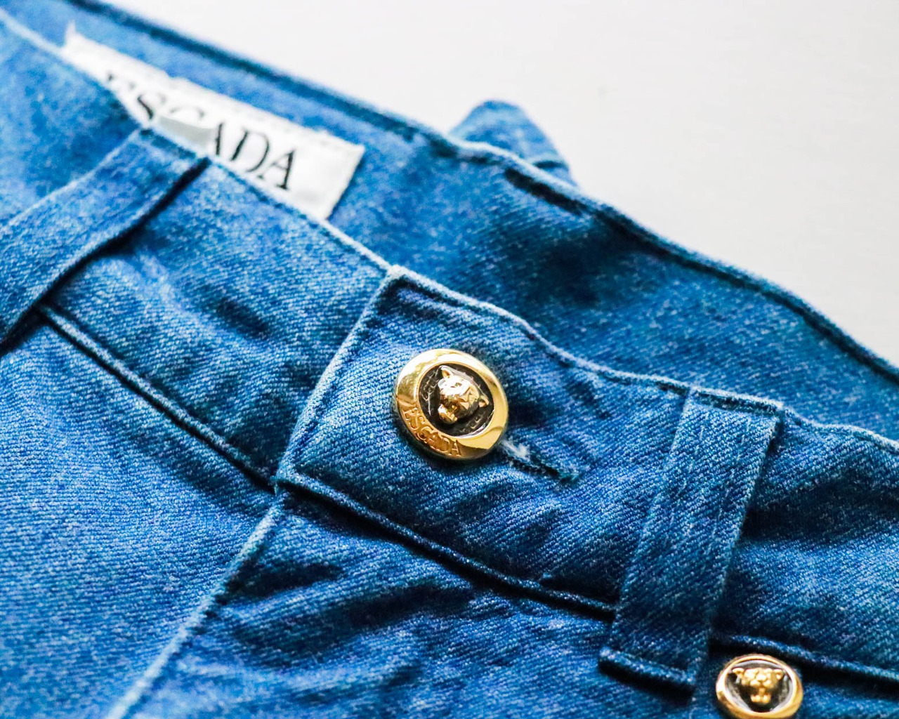 ドイツ・ミュンヘンに拠点を置くヨーロッパを代表する高級ファッションブランドESCADAから綺麗なブルーカラーのデニムパンツが入荷しました。ヒップラインを綺麗にみせてくれるハイエストの履き込みと程よい太さが美シルエットを作ります。フロントに付いたブランド代表の虎モチーフのボタンたちと後ろポケット部分のロゴ刺繍とラペルがレトロなアクセントをプラス。