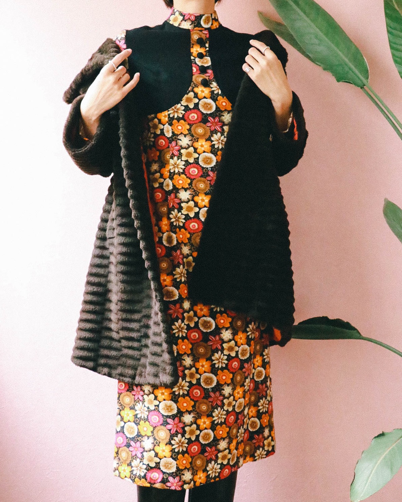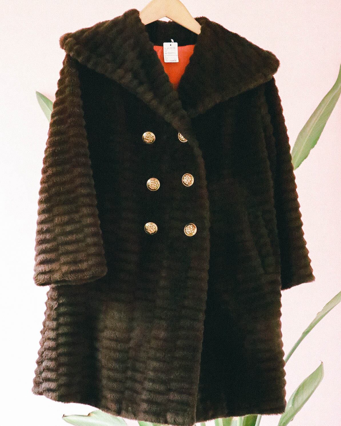 60's brown eco fur coat
