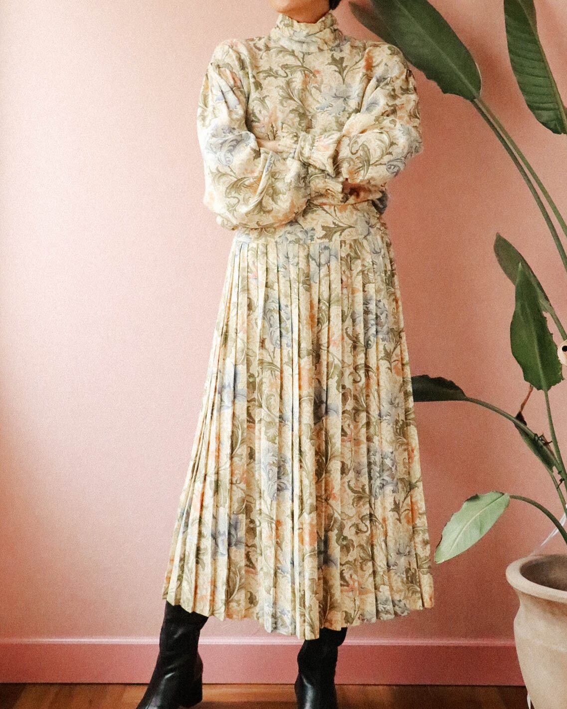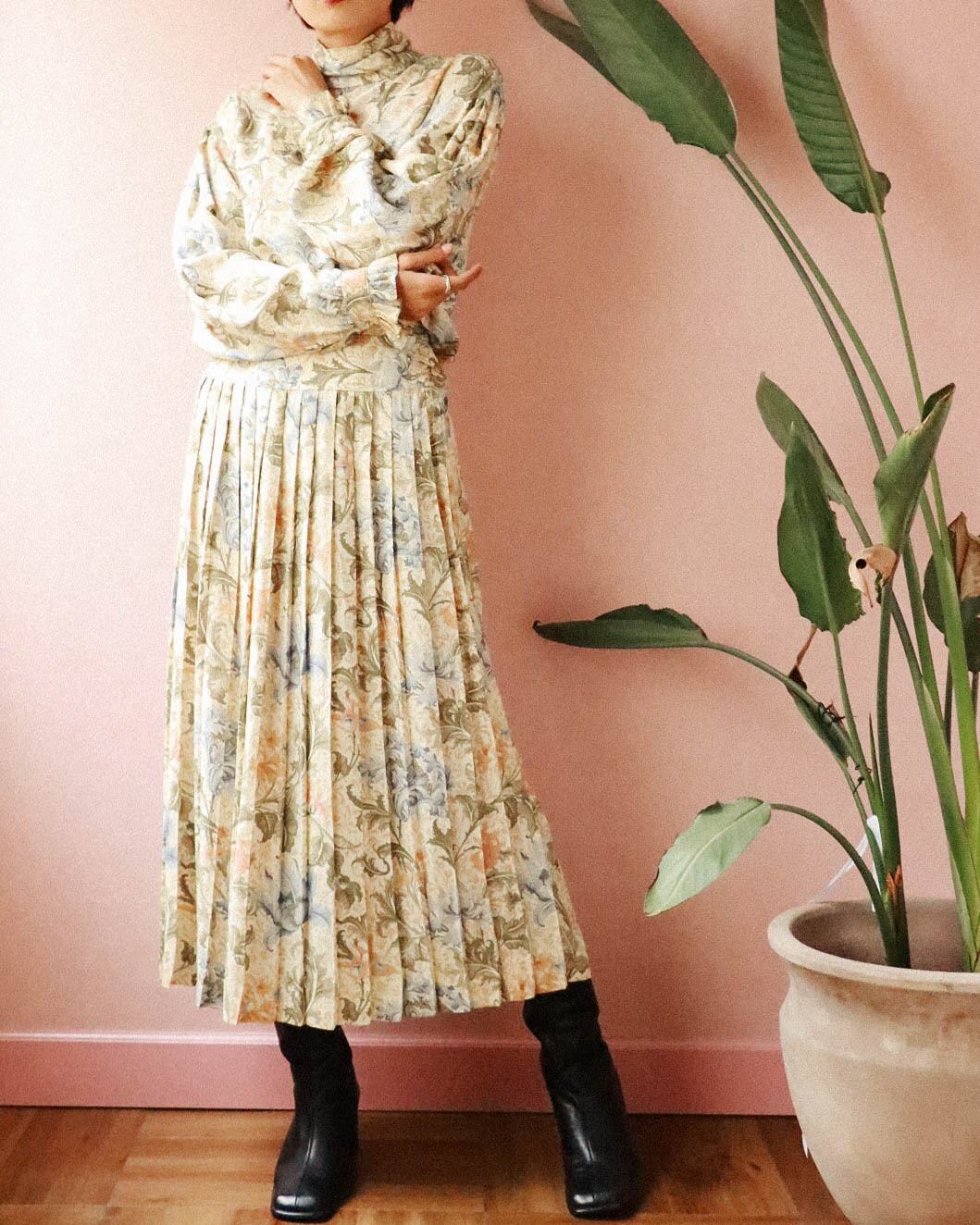 上品に揺れ動くプリーツデザインが花々を踊らせ、ロマンティックな仕上がりに。