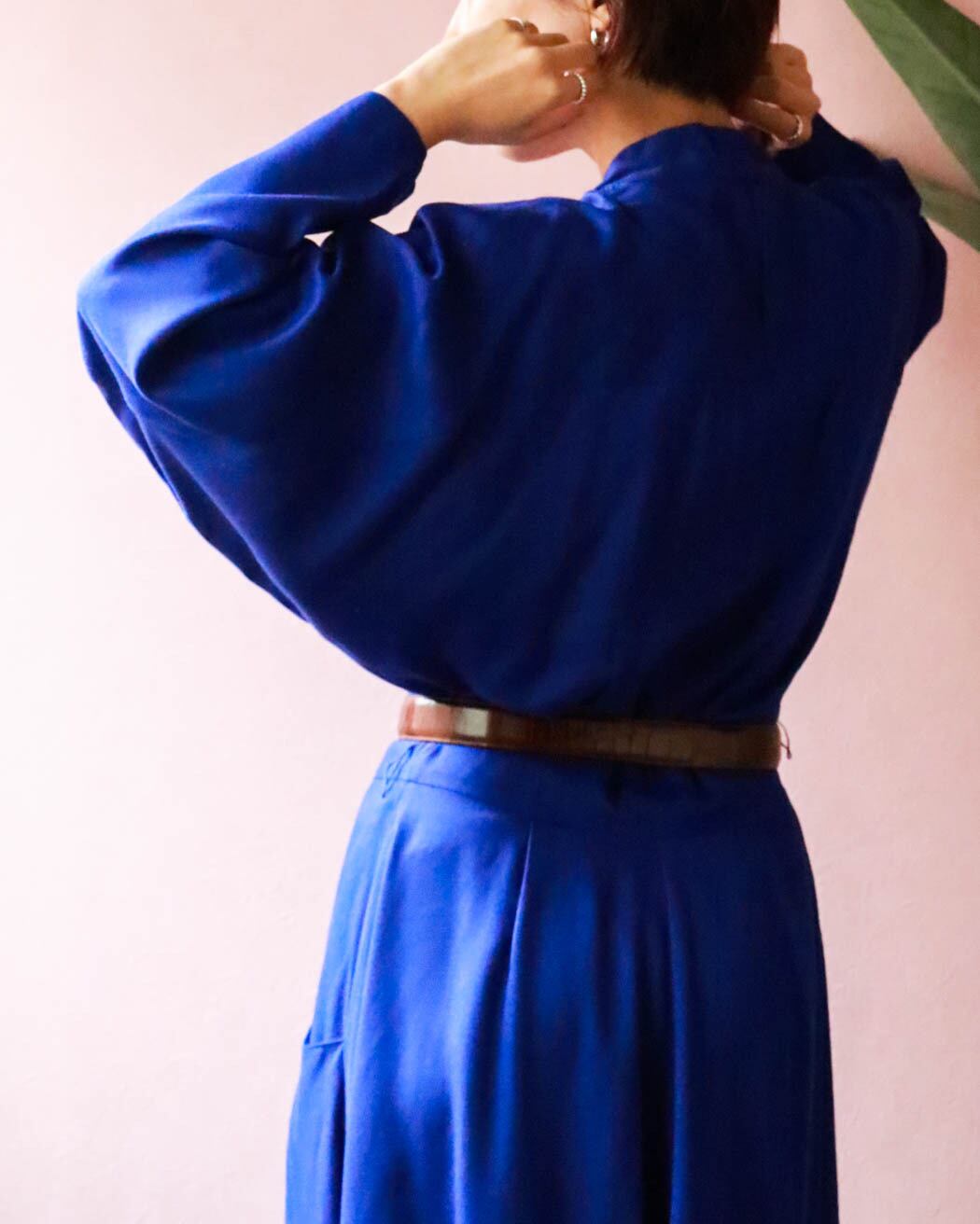 綺麗なビビッドブルーカラーのロングフレアドレスが入荷しました