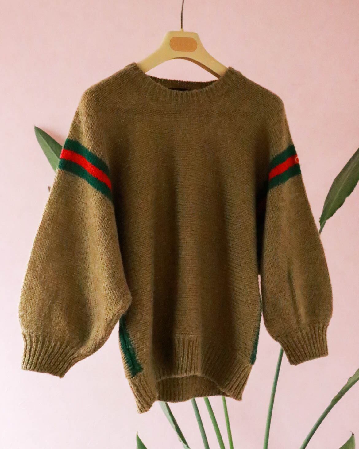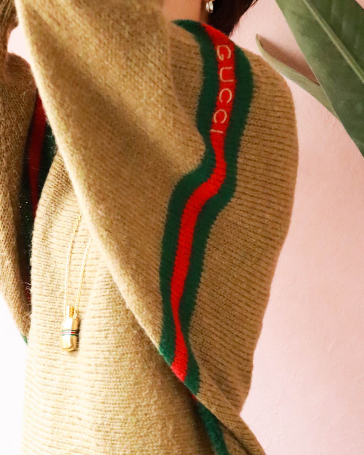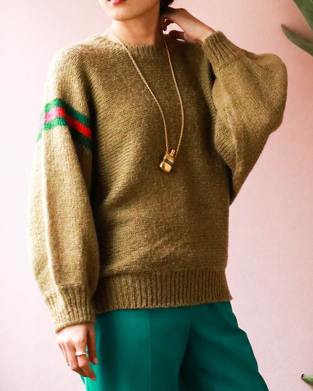 大人のカジュアルなニットスタイルにはクラシカルなブランドでエレガントさをプラスしたい。