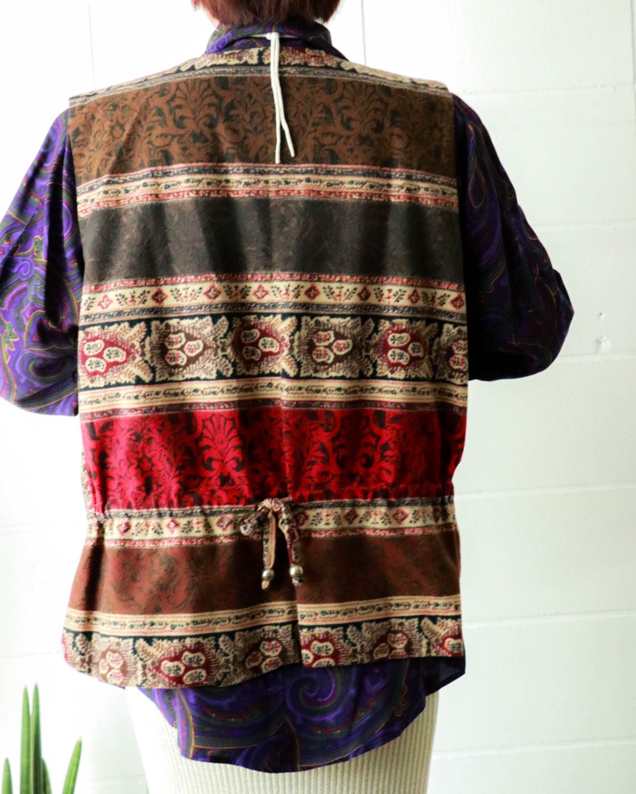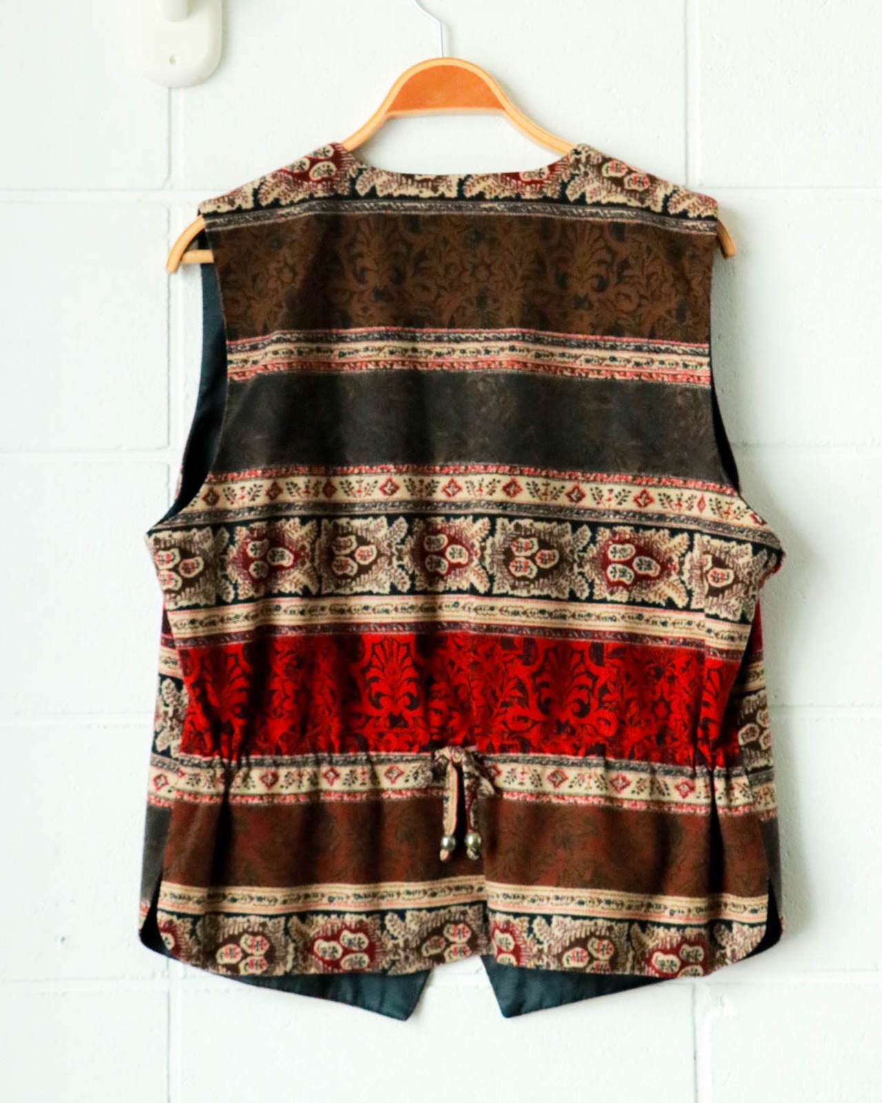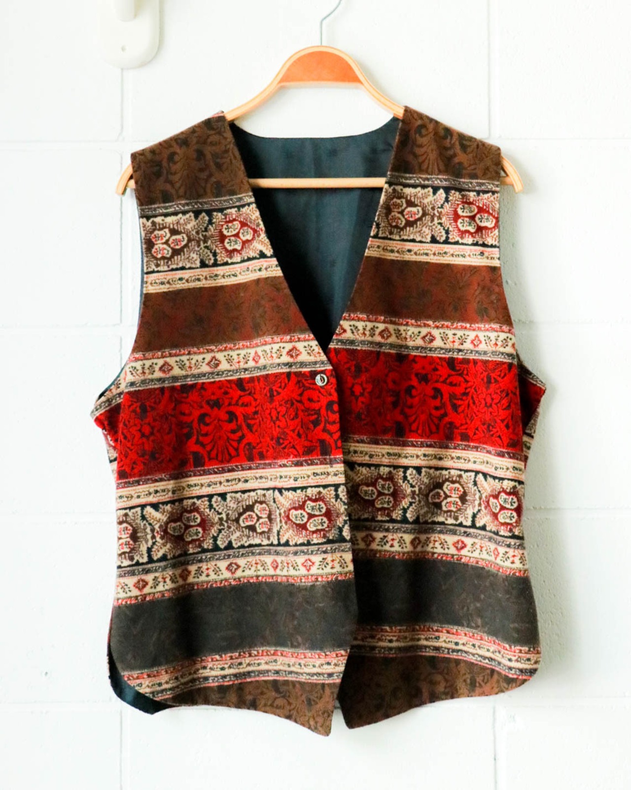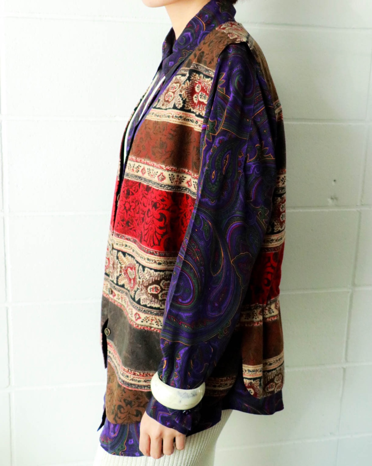 ハンドメイドと思われる仕立てのいいベストが入荷。細やかな柄は意外と柄物との相性もよく、ワイドシルエットが今の気分にはまる。