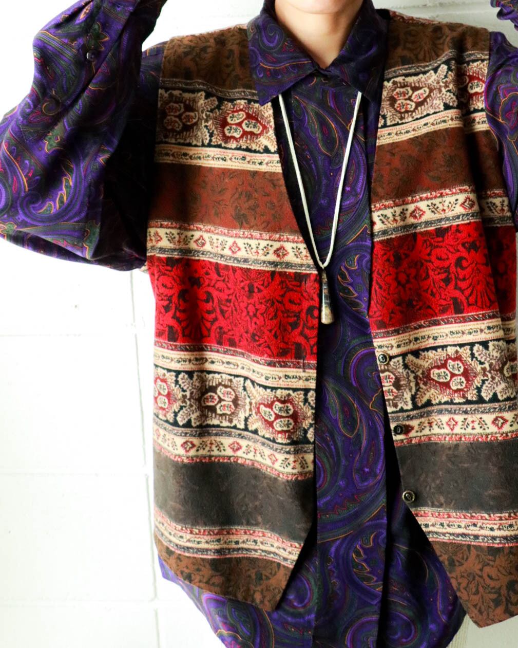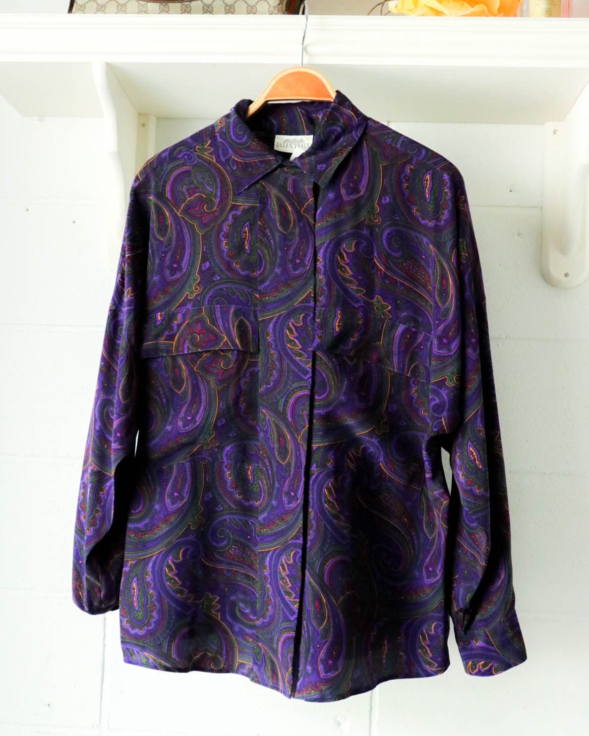 妖艶なパープルとペイズリーのデザインがめずらしいヴィンテージならではのシャツ。