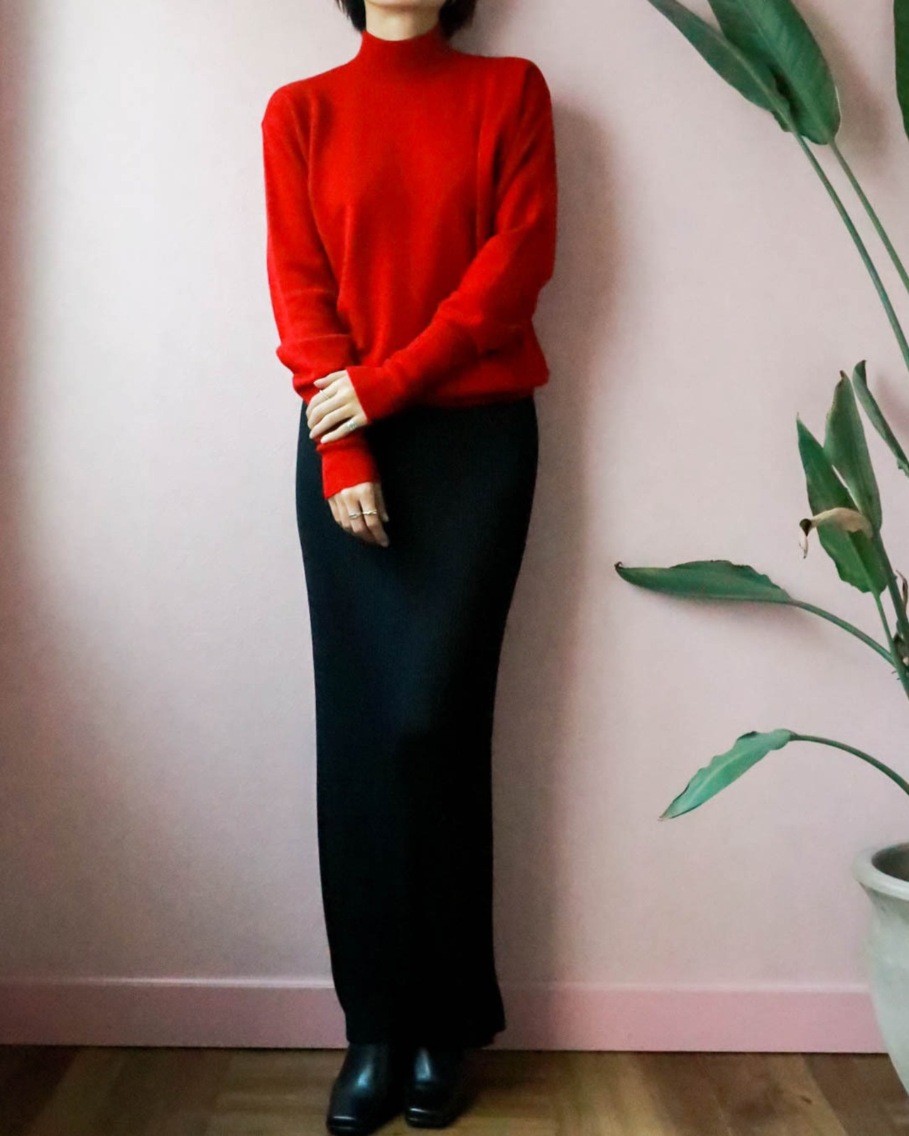 ウエストラインから足首までミニマルで美しいデザインがスタイルアップ効果抜群