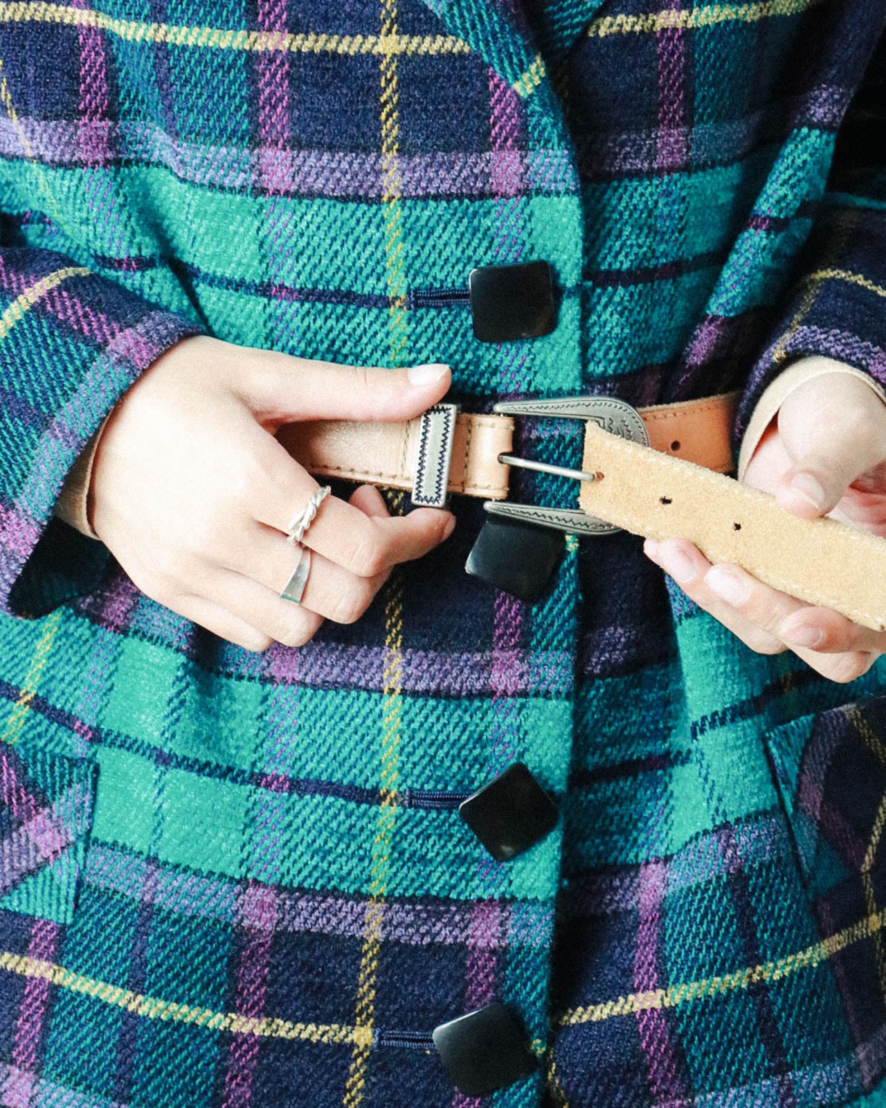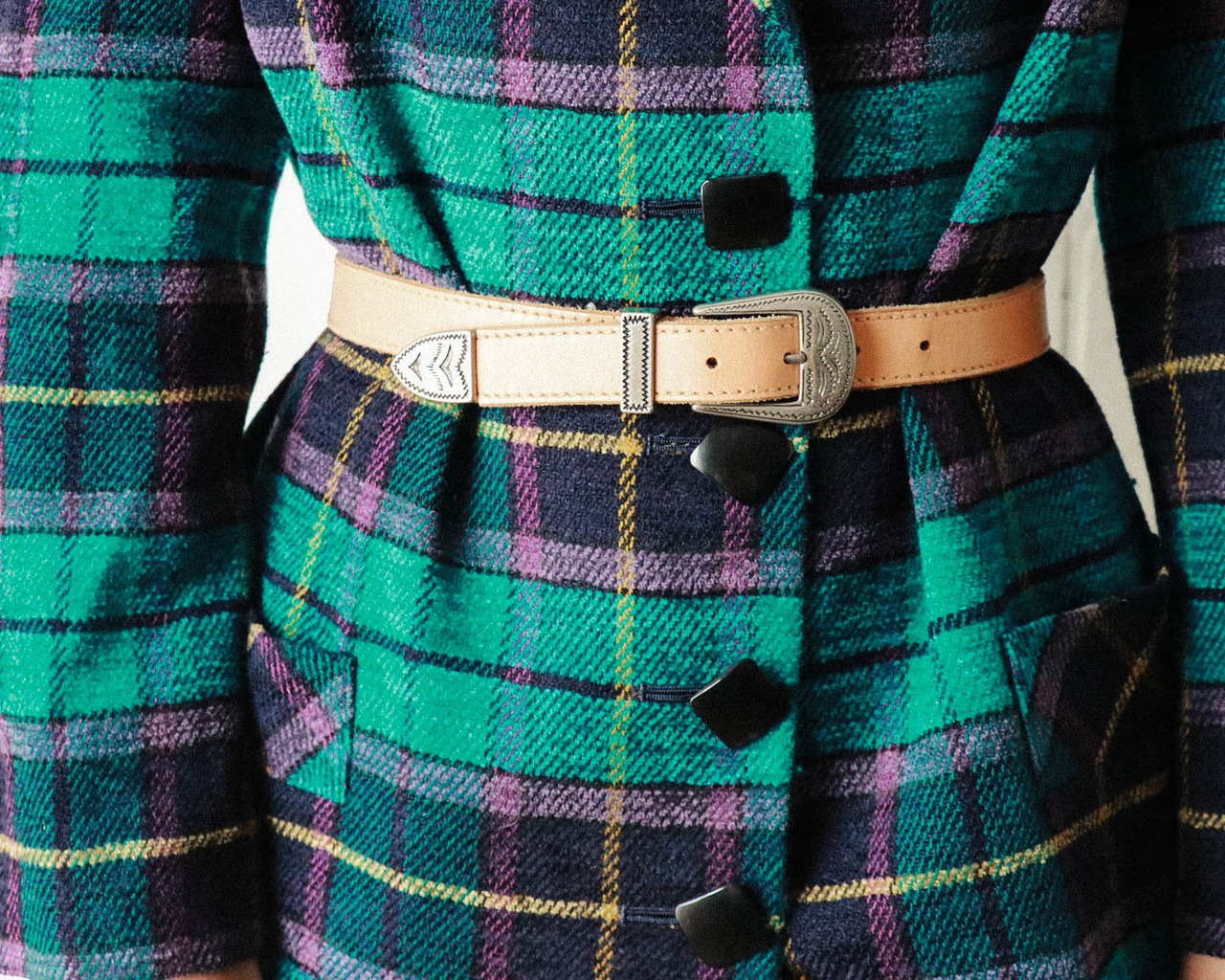 上質の厚手レザーにシルバーのバックルがをシックな組み合わせ。使いやすい太幅で、パンツスタイルはもちろん写真の様にワンピースのブラウジングとしても◎一年中大活躍できます!!