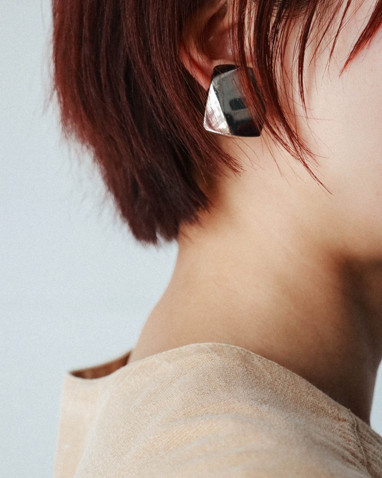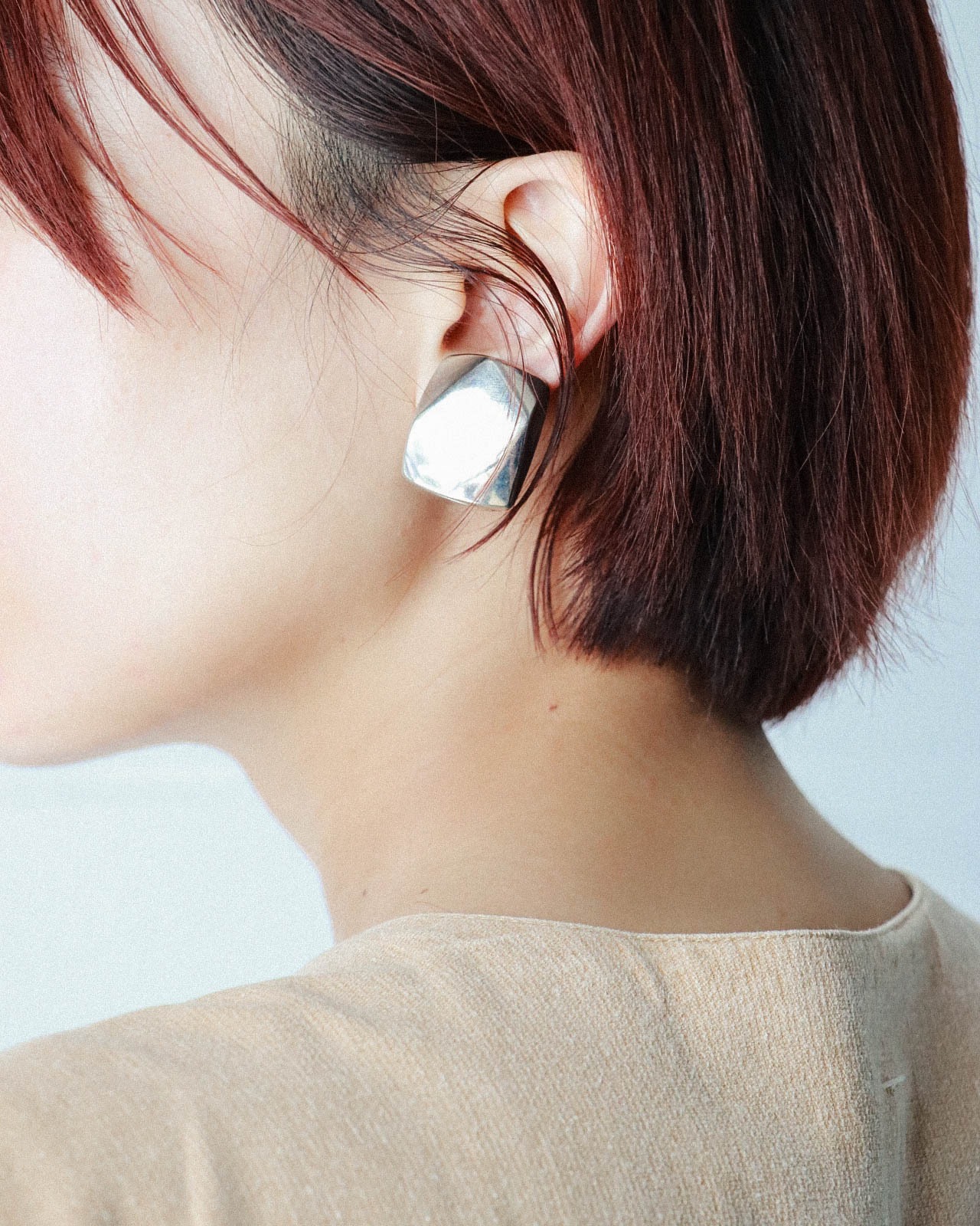 顔まわりが華やぐ艶やかなシルバーカラーの大振りイヤリングは