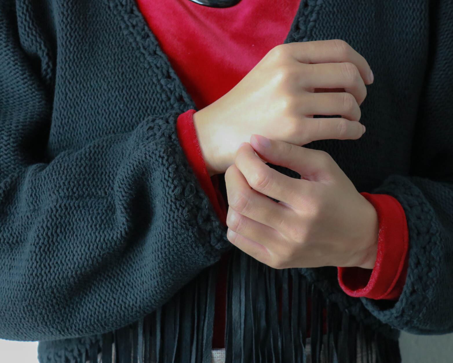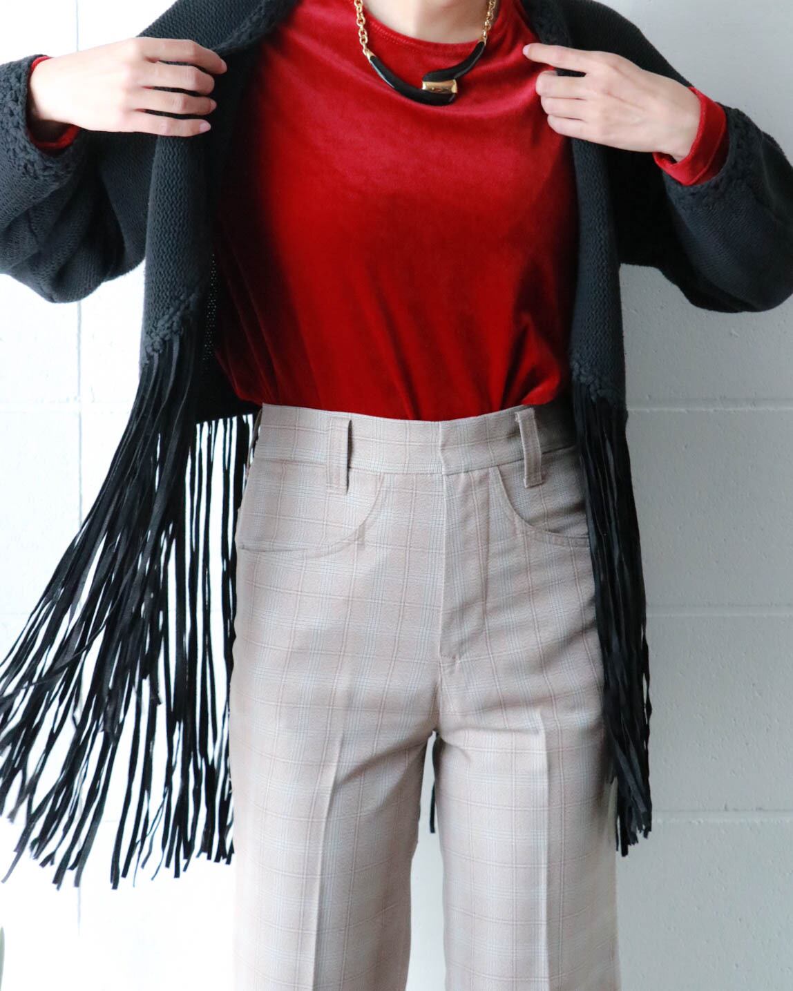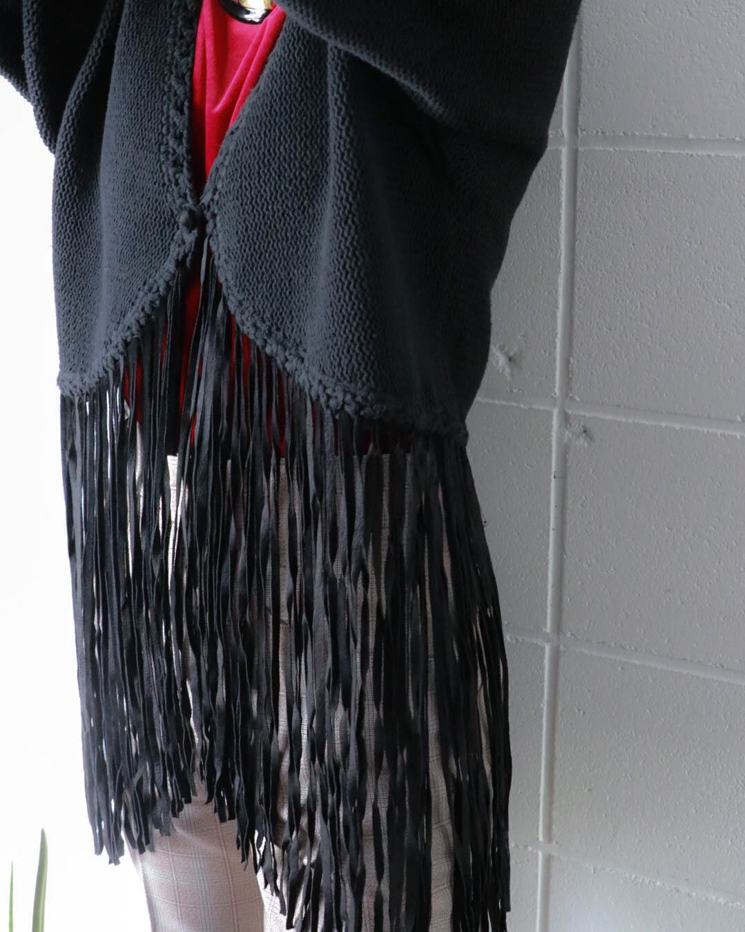 大胆なフリンジデザインはカジュアルになりがちなニットカーディガンを昇格させてくれるよう。 ヴィンテージならではのユニークな発想が着る人にも見る人にも楽しくさせてくれる遊びゴコロのある一枚です。