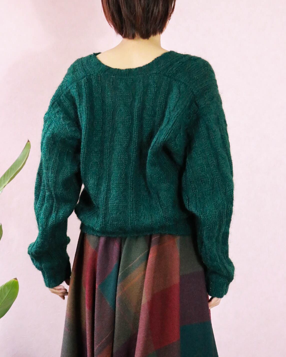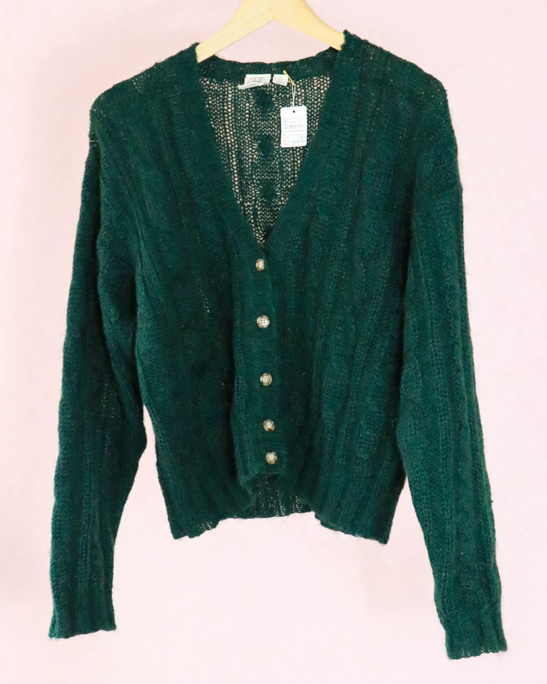 ふわっとした軽い肌触りのモヘア混ぜカーデイガンが入荷。フロントは深いv ネックに、ゆったりめなボーディー!ダークグリーンカラーが今の季節にぴったりの色合いで、短めの丈感でどんなボトムズとも合わせやすい一着!女性らしさを引き出してくれる上品なニットで秋冬コーデをお楽しみください!