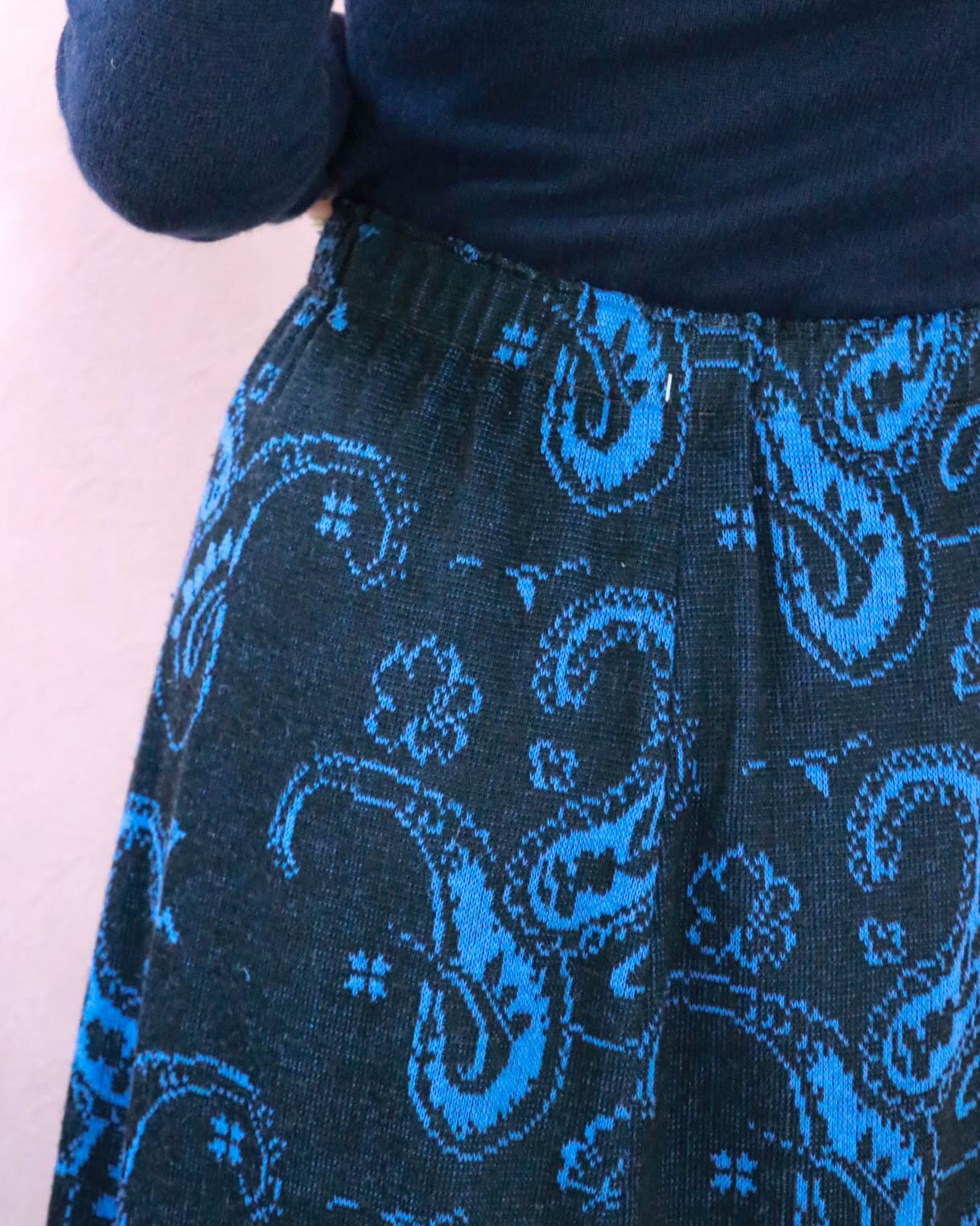 すとんと落ちたシルエットに沿う規則正しいペイズリー柄が絶妙なニットスカートが入荷。