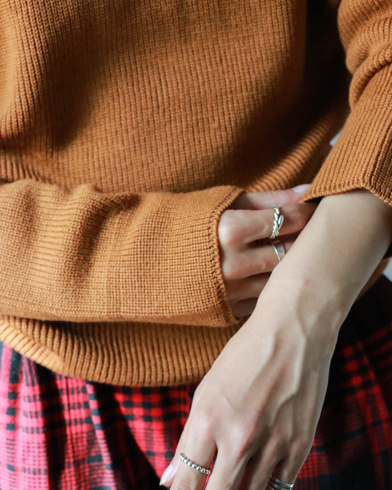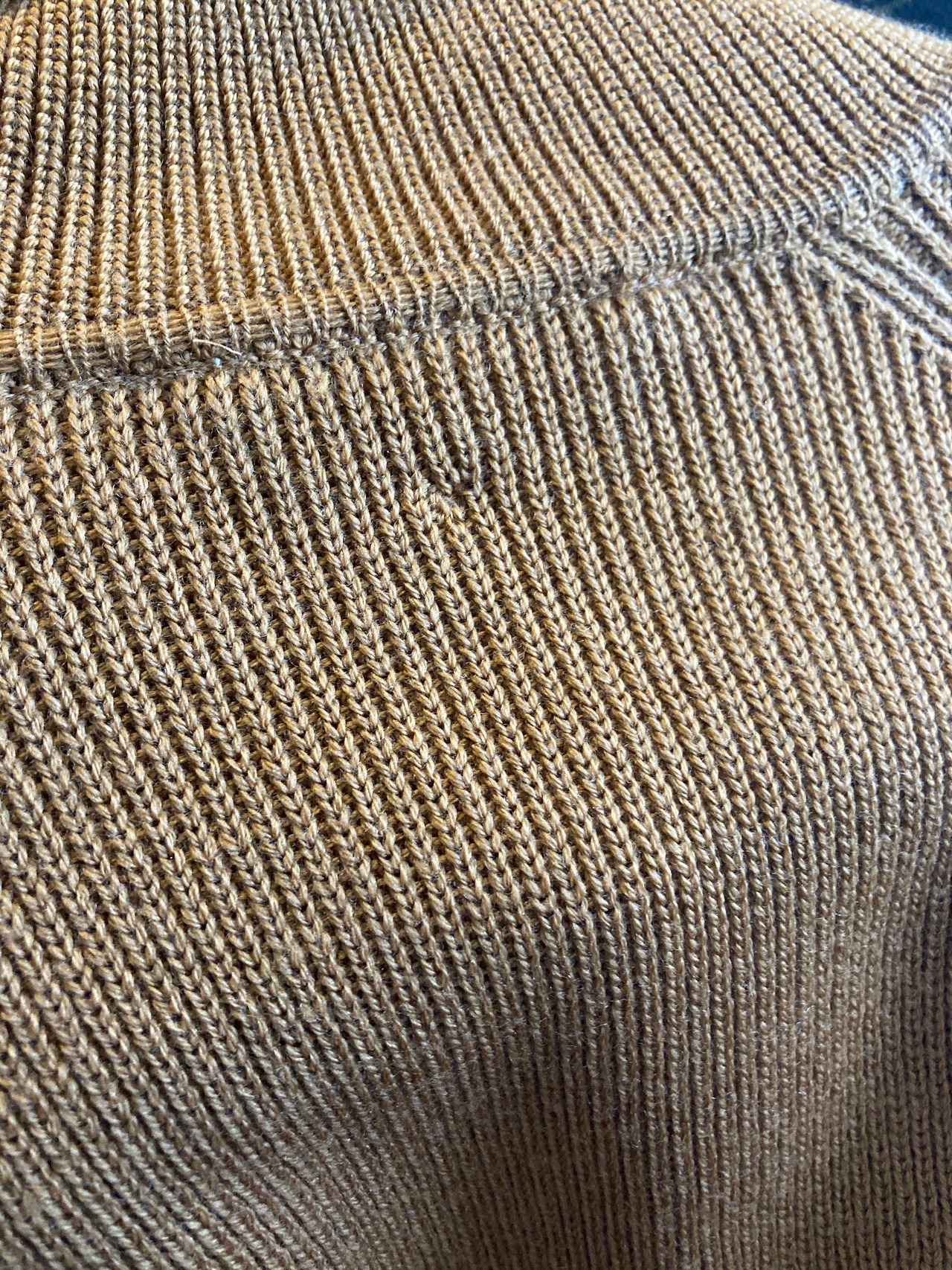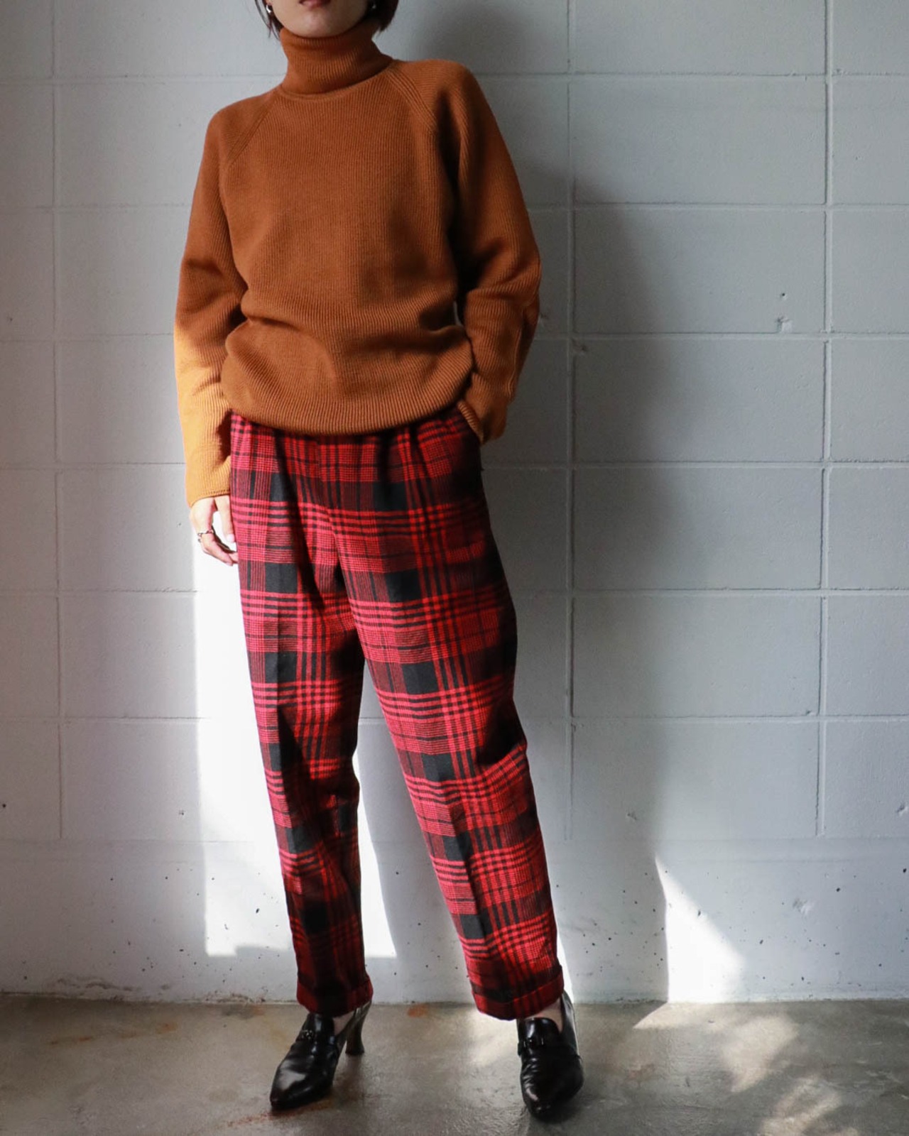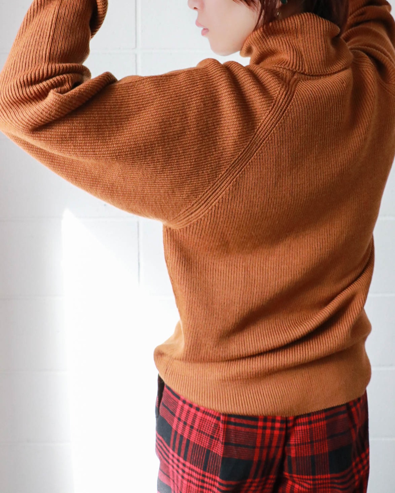 入荷したてのディオールのタートルネックセーターはこれからの寒いシーズンにかちっとはまるやさしいブリックカラー。表記はないですがウール素材とハイゲージで寒さにも心強い。
