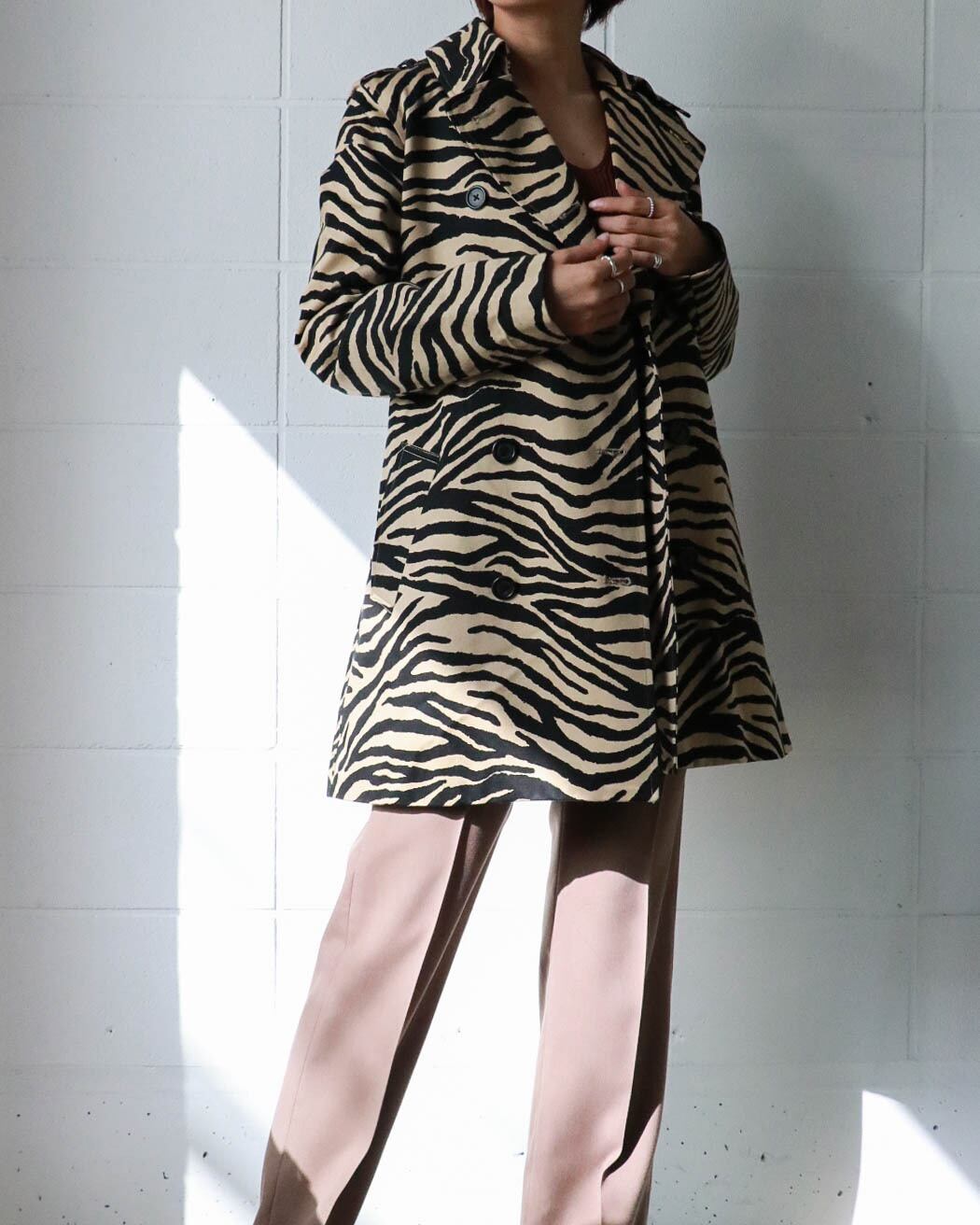 ゼブラ柄のエッジが効いたコートはラルフローレンのもの。