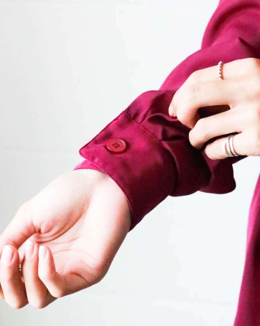 妖艶なパープルカラーが目を惹くDiorのブラウス。