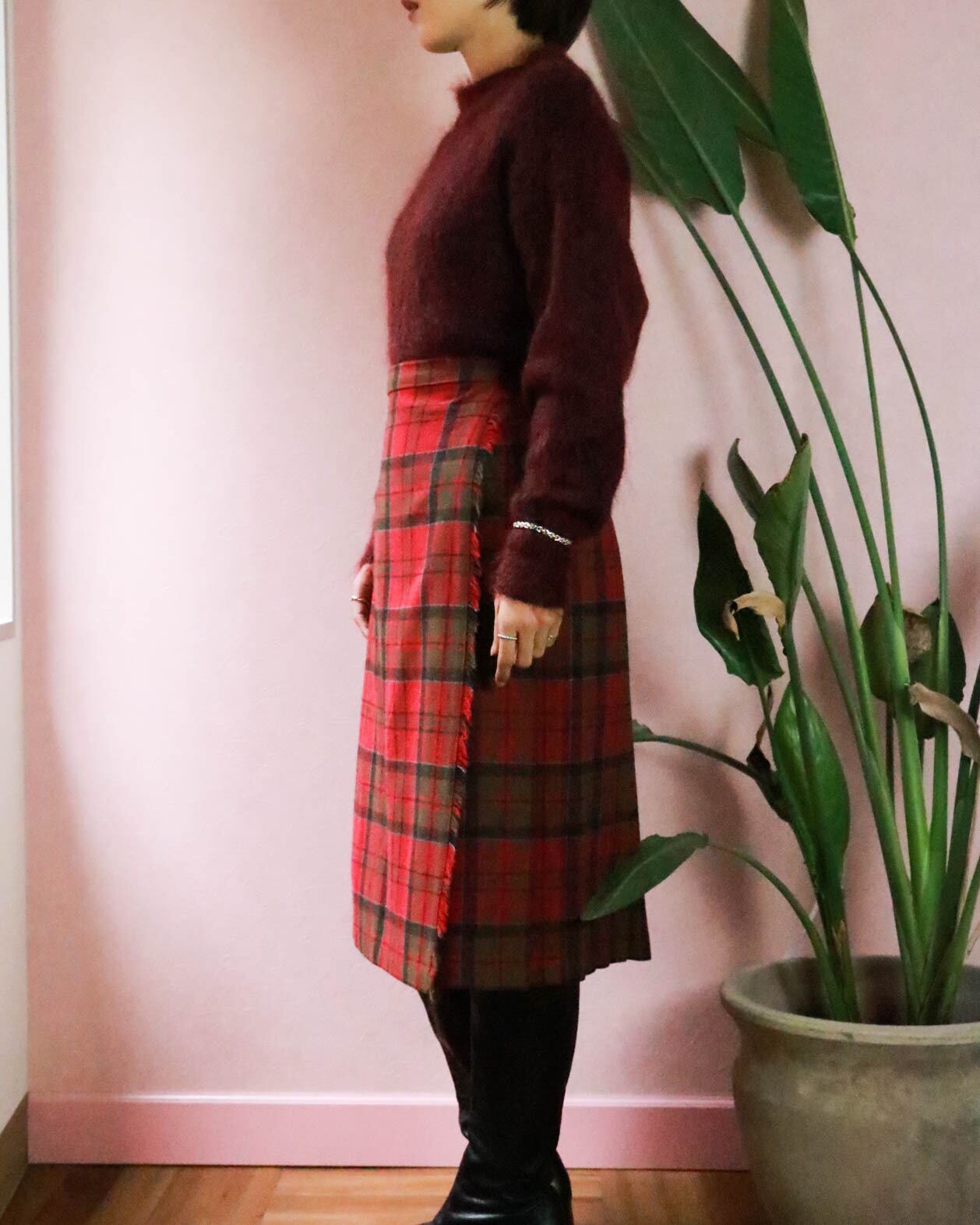 シーズントレンドでもあるチェック柄で、使いやすい赤ベースは一枚持っておくと大活躍します。