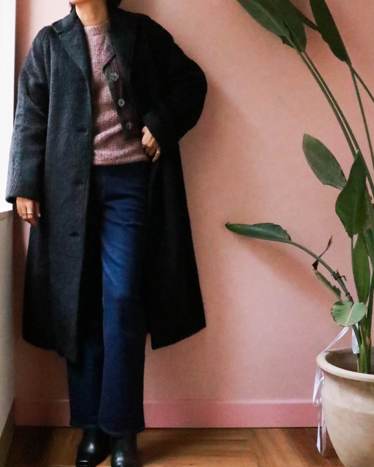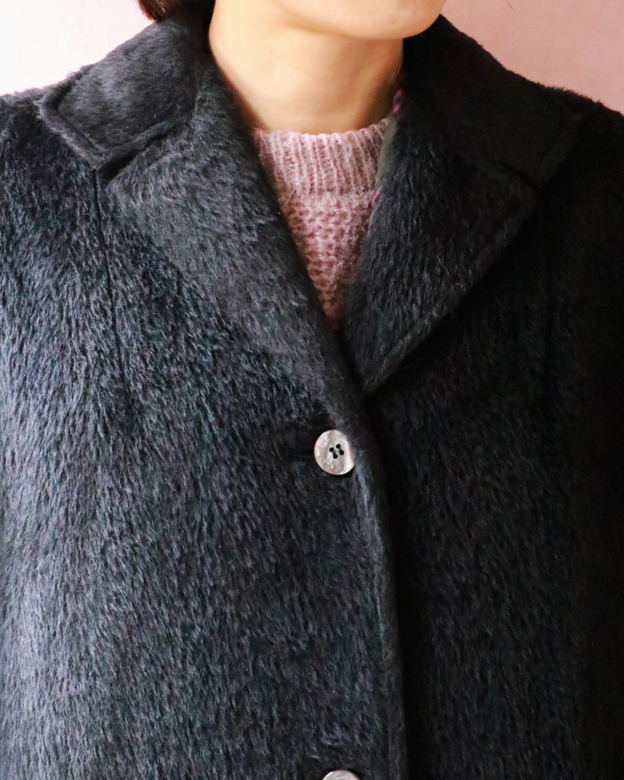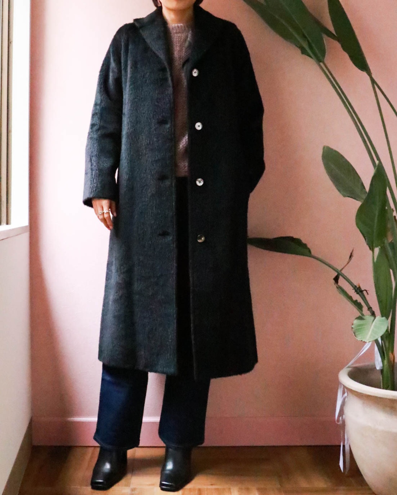 洗練された佇まいが大人の女性にぴったりなこちらのコートは、メゾンブランドフェラガモ のもの。オールブラックのアルパカボディーにシンプルボタンが印象的。無駄のないミニマムなシルエットでモードにもカジュアルにも着まわせます。冬の定番アイテムチェスターコートもヴィンテージをチョイスして他とは差をつけて。