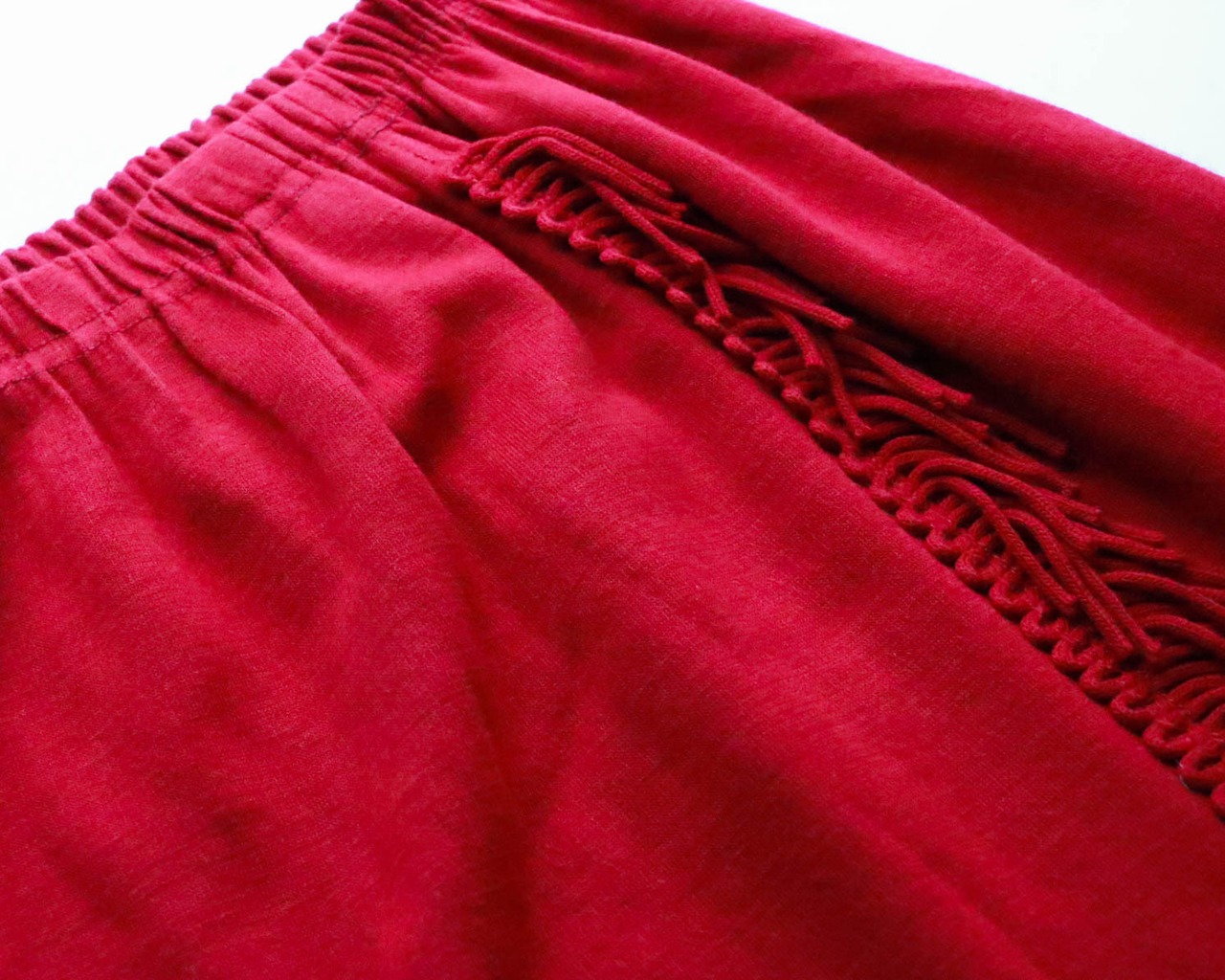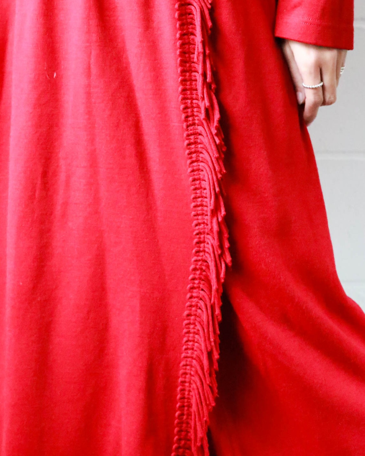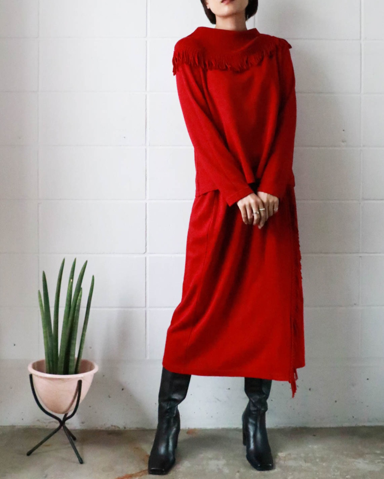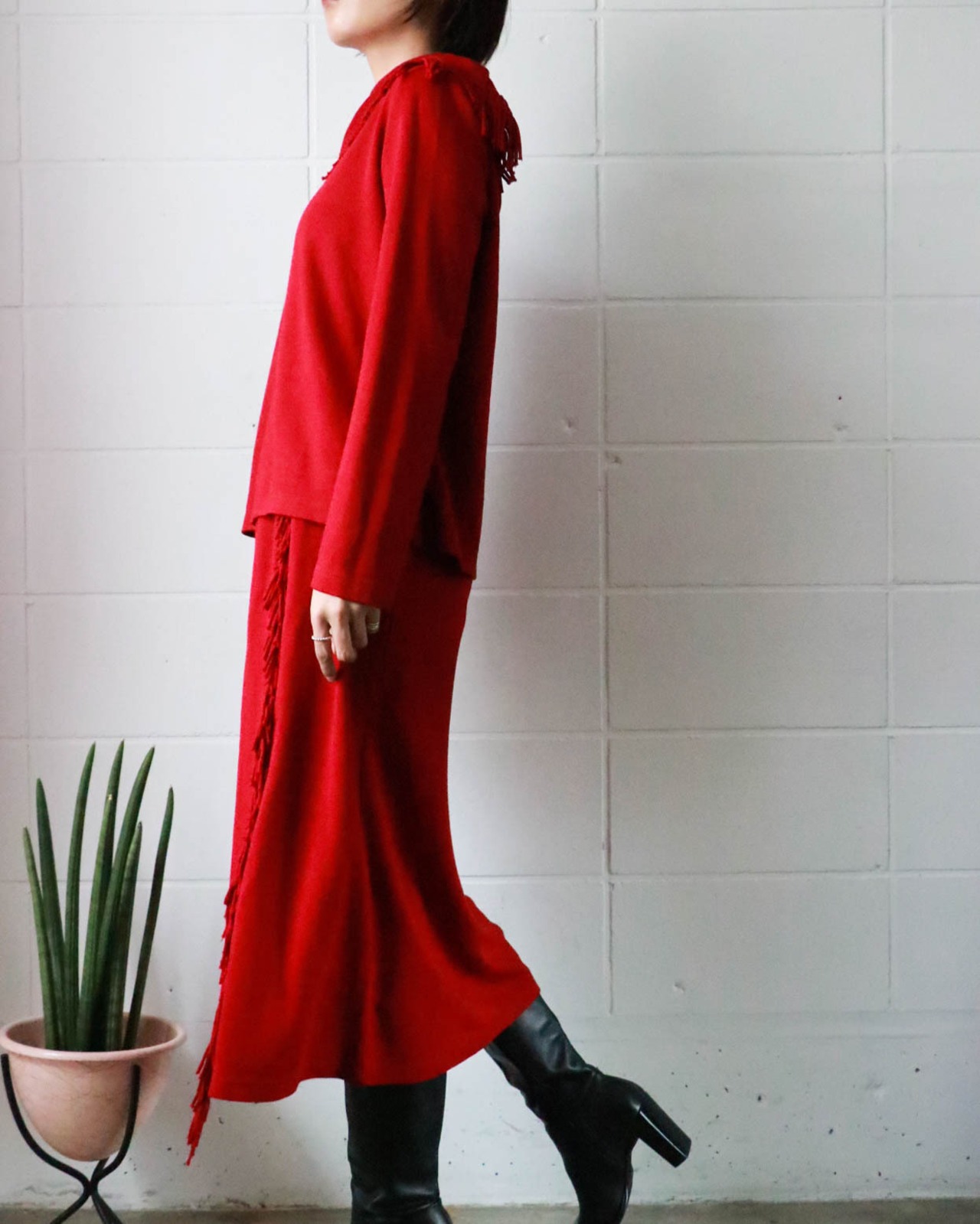 鮮やかな赤色が目を惹きつけるフリンジスカートが入荷。