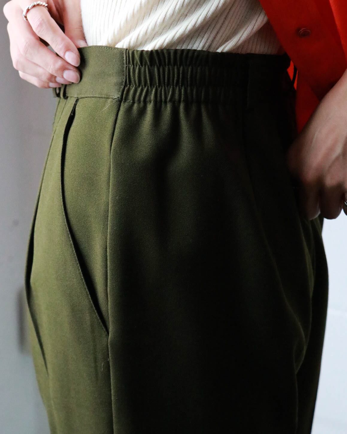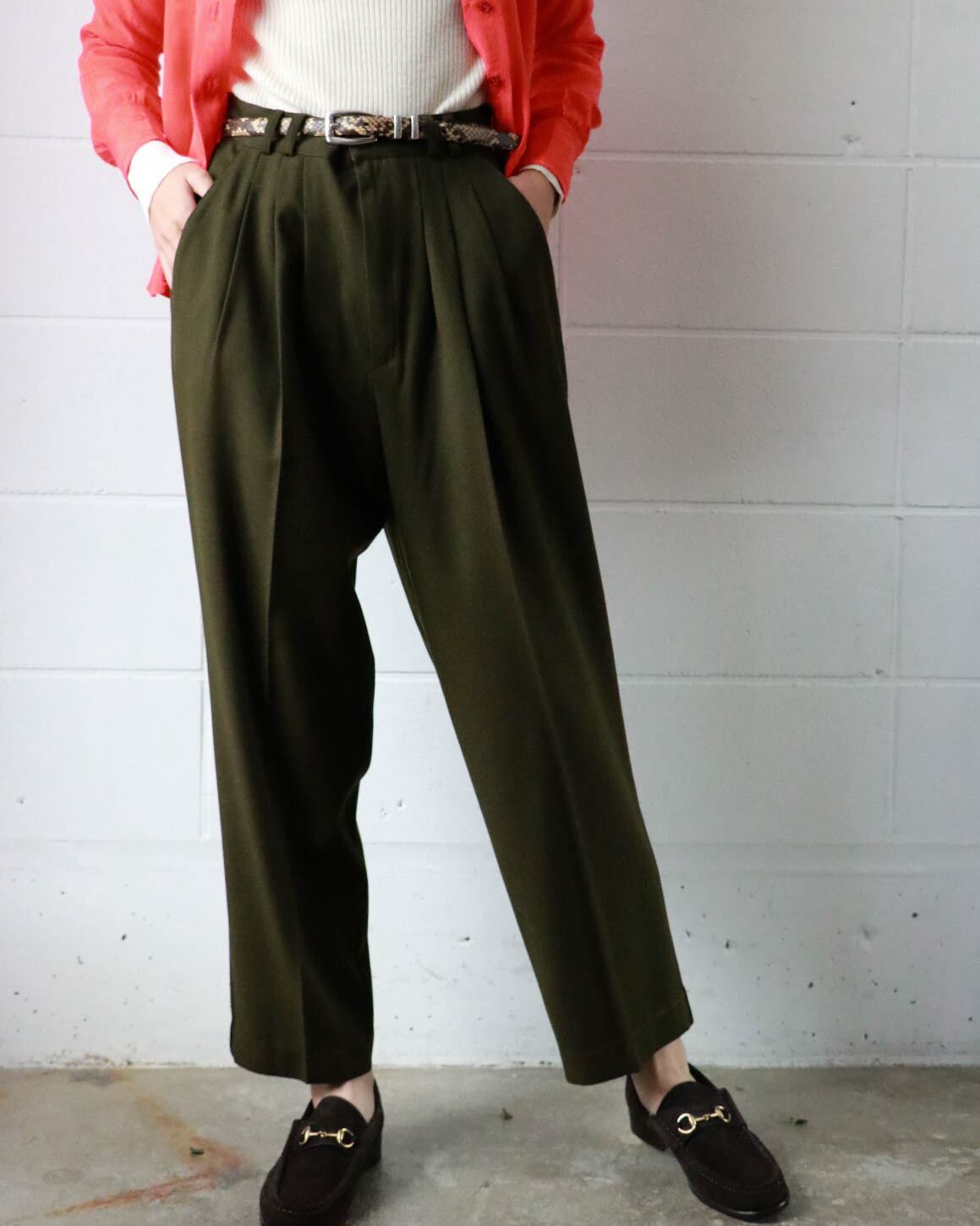 程よい太さが今の気分にハマるテーパードパンツ。タフなポリエステル素材でシワになりにくく扱いやすいので普段着としてヘビーユースしたい。メンズライクになりがちなパンツですがフェミニンなトップスを合わせれば女性らしいスタイルも楽しめますよ。