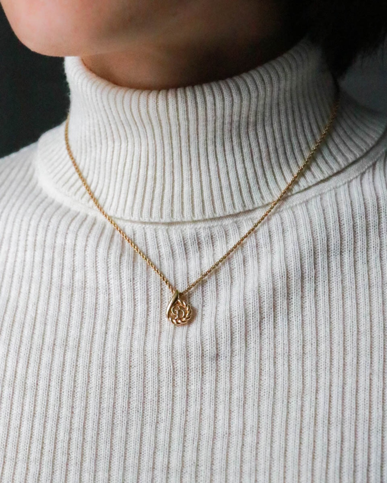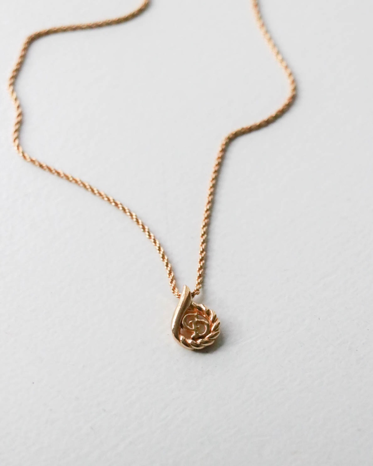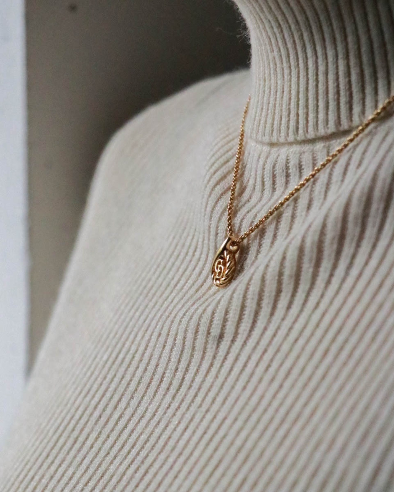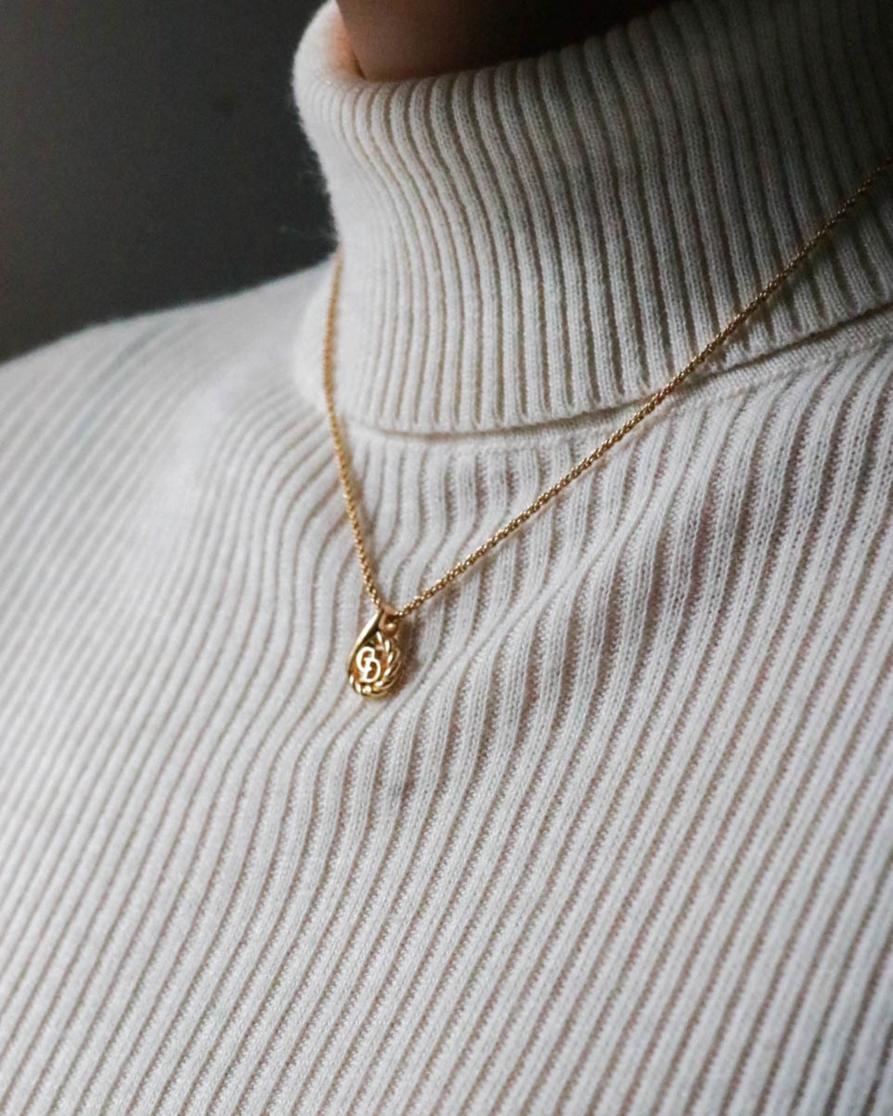 こちらは透かしデザインのティアドロップ型がリュクスな雰囲気を誘うネックレスです。