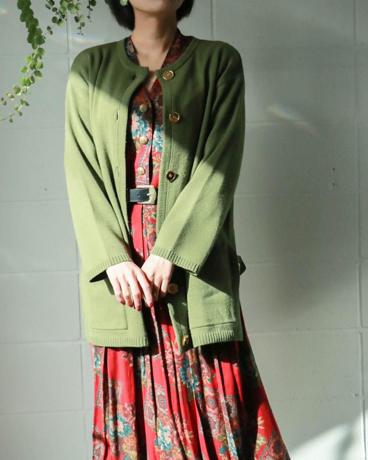 綺麗なグリーンカラーのウールカーデイガンはジバンシイのヴィンテージ