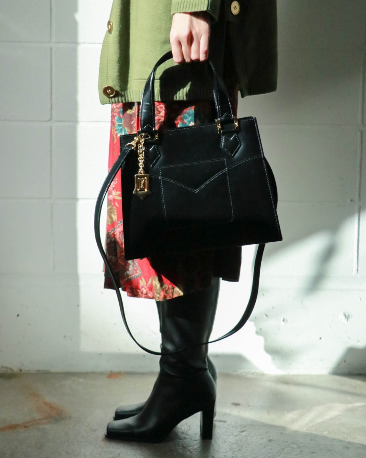 ブラックとゴールドがエレガントな艶めきをコーディネートにプラスし、レディなスタイルに格上げしてくれるイヴサンローランの3wayレザーバッグ。