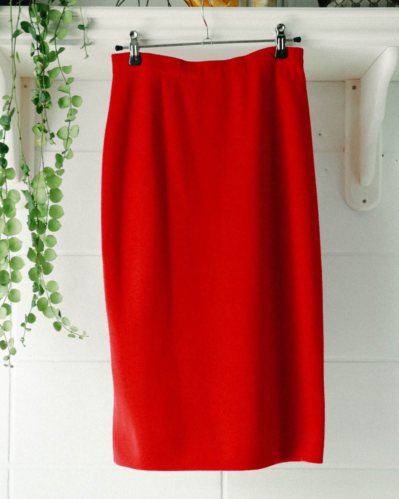 ゴムウエストでリラックスした着心地ながら綺麗なシルエットです。