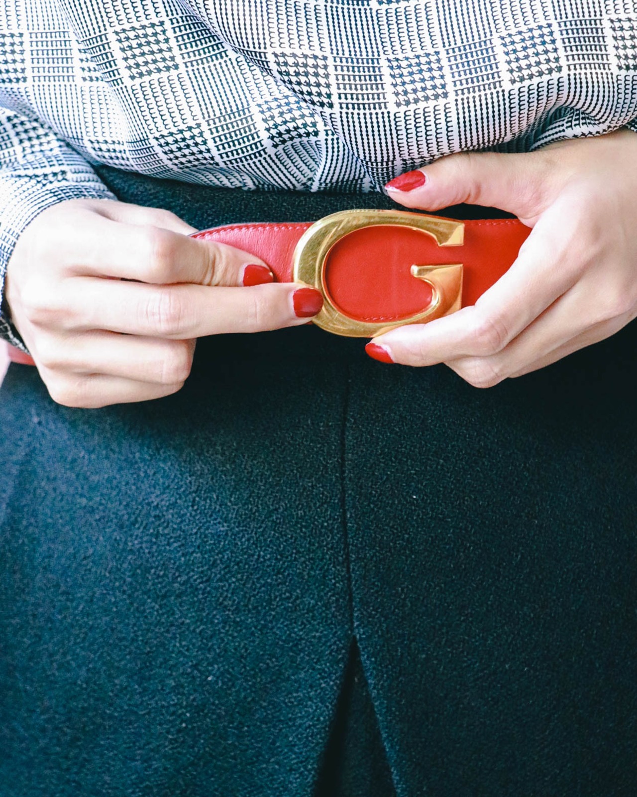 金具を取り外すことができるリバーシブル仕様。その日のコーデに合わせて、色を変えることができるのは嬉しいポイント。ベルトなど小物使いこそお洒落に決めたいです。