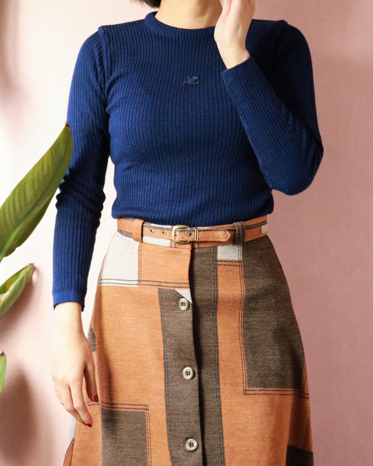 クルーネックのネイビーブルーニットはクレージュのヴィンテージ