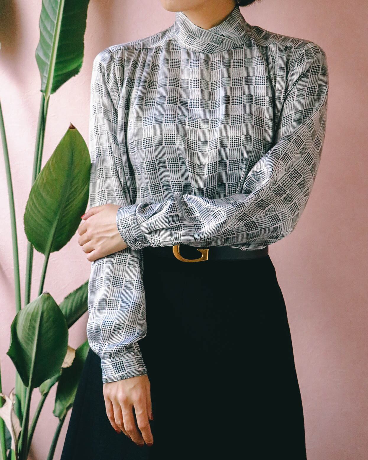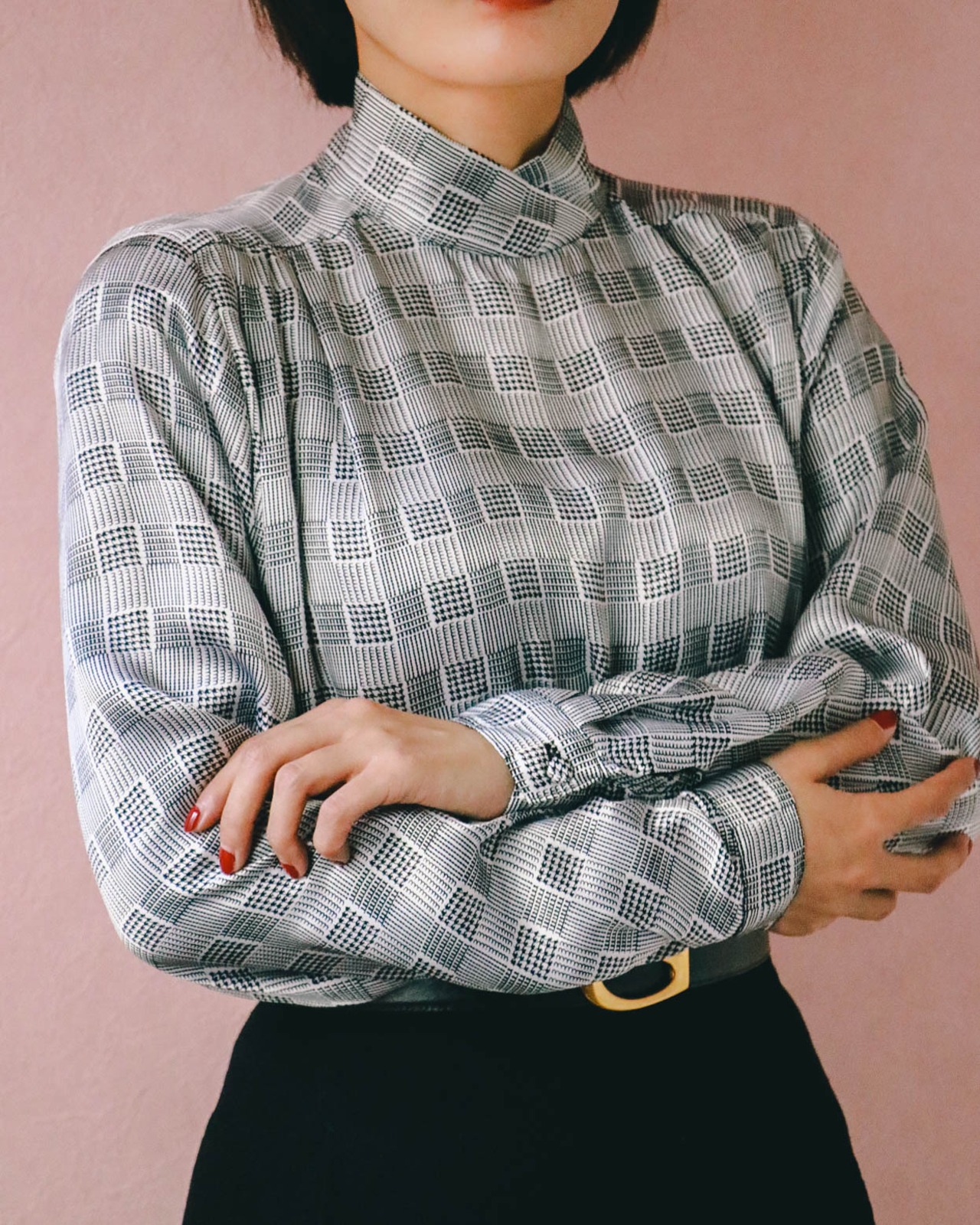 首に沿ったハイネックデザインがとても美しく上品な印象です。