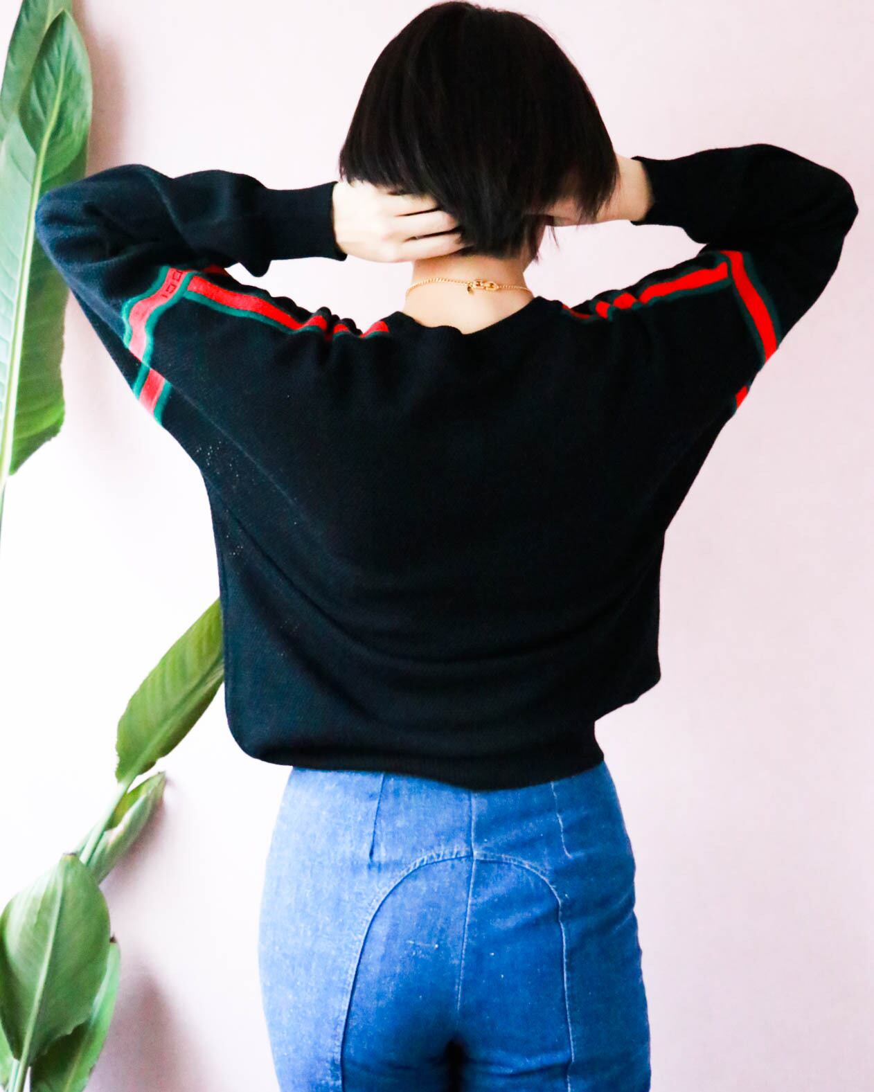 程よいボリュームのシルエットに加え、肩から腕にかけて入ったシェリーラインにグッチのロゴがアクセントに。カジュアルでありながら気品ある一着は大人のカジュアルスタイルにマッチ。