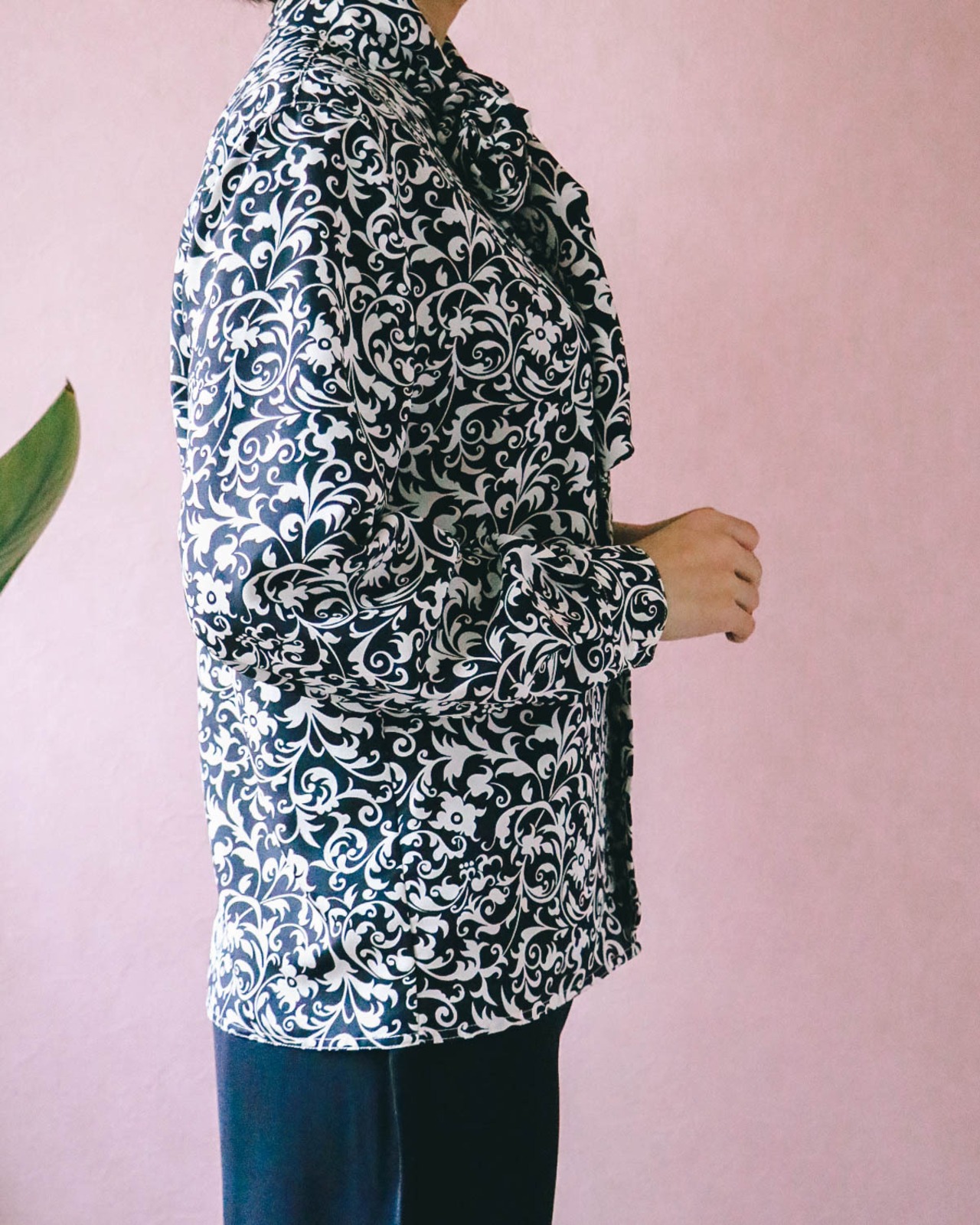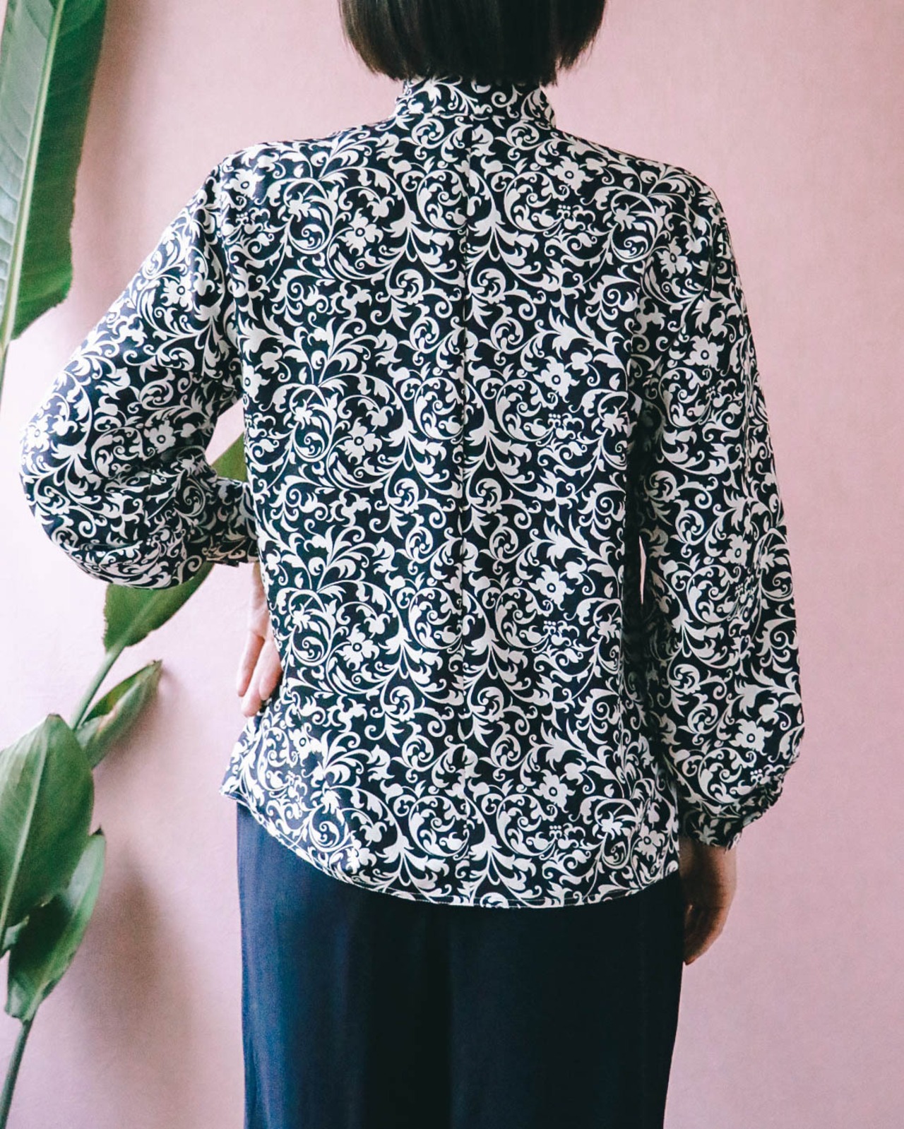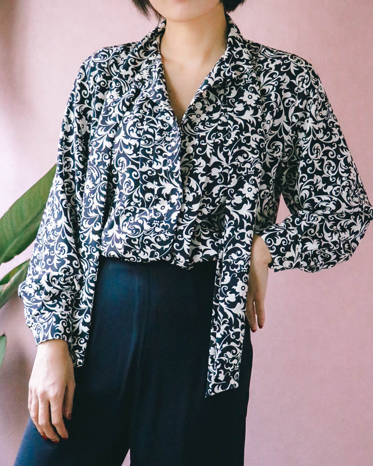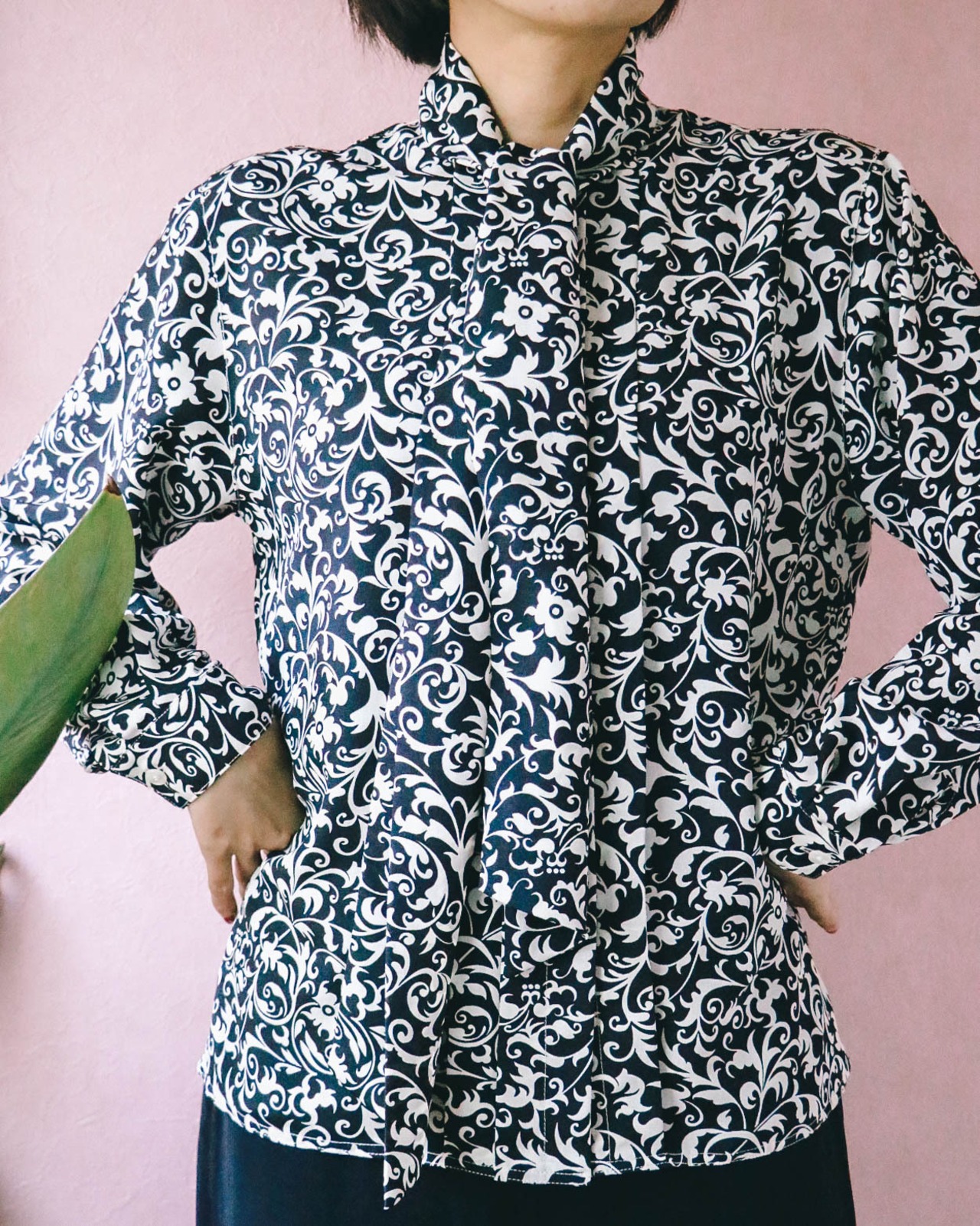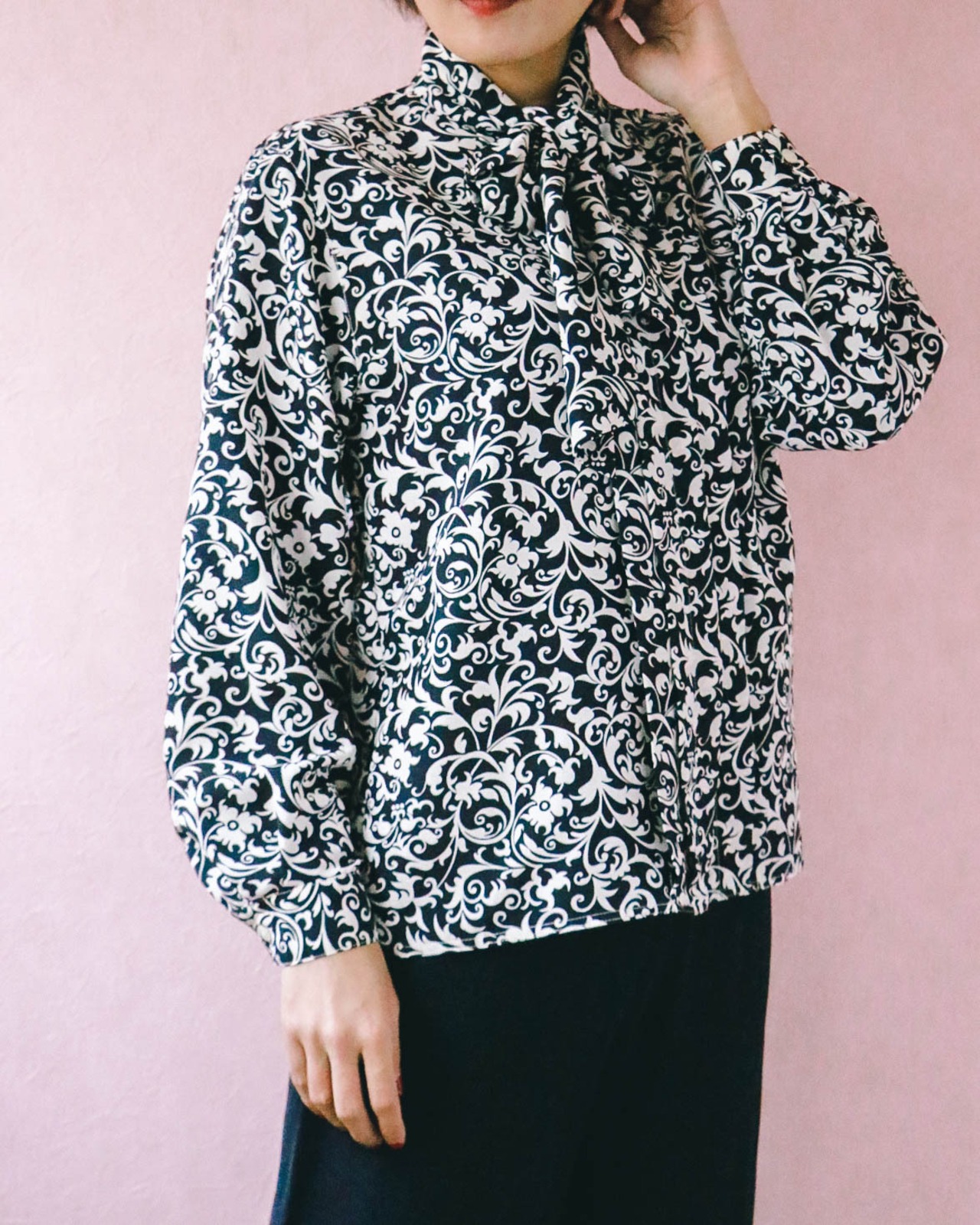 こちらのブラウスはモノトーンに抑えることにより模様がよりはっきりとします。