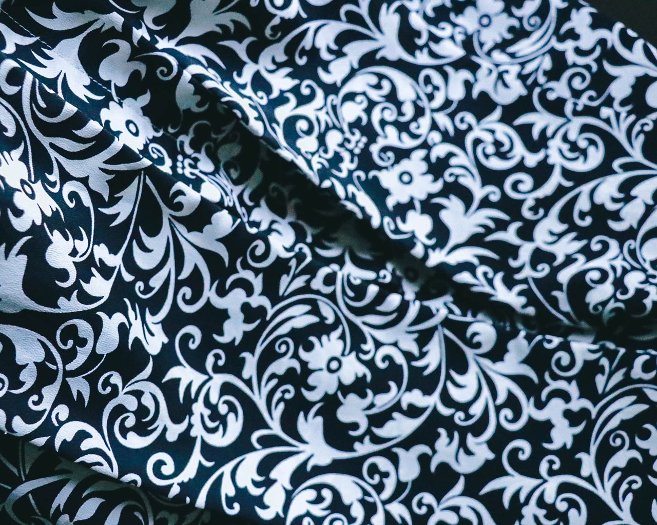 ダマスク模様とは植物や果物、花柄などをモチーフが蔦で繋がったように繰り返すデザイン。ラグジュアリーな雰囲気を感じさせ、ヨーロッパではインテリアに定番として使われる柄でもあります。
