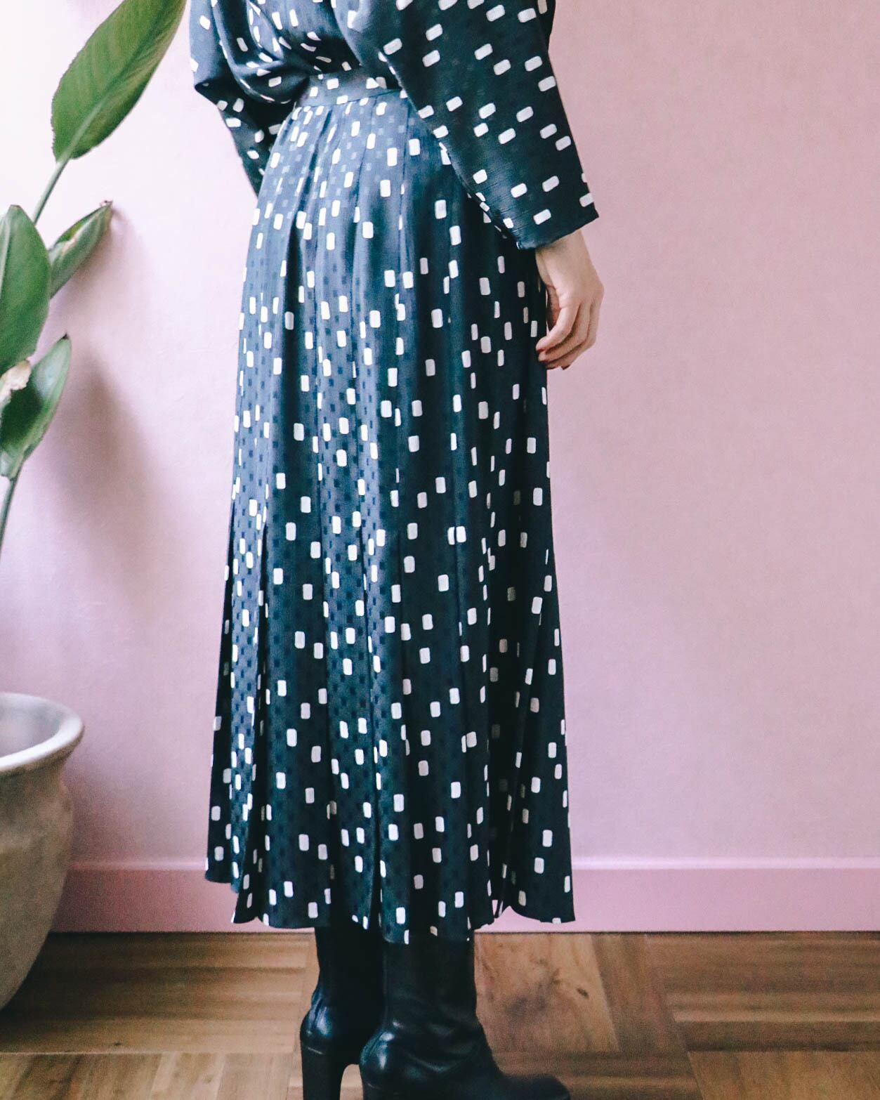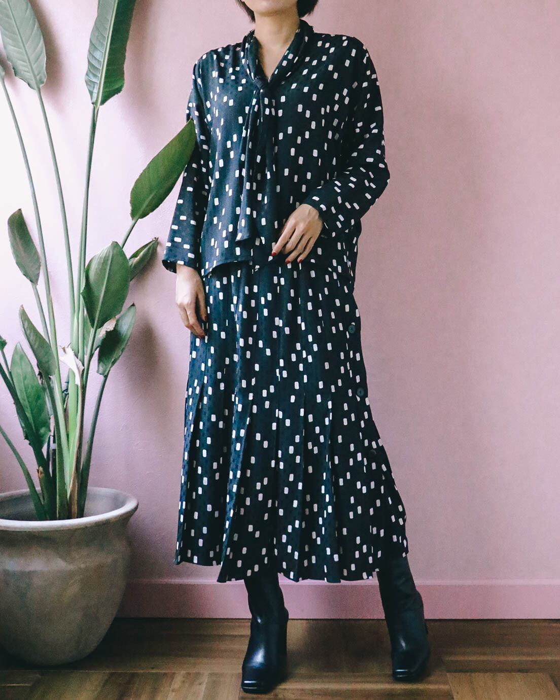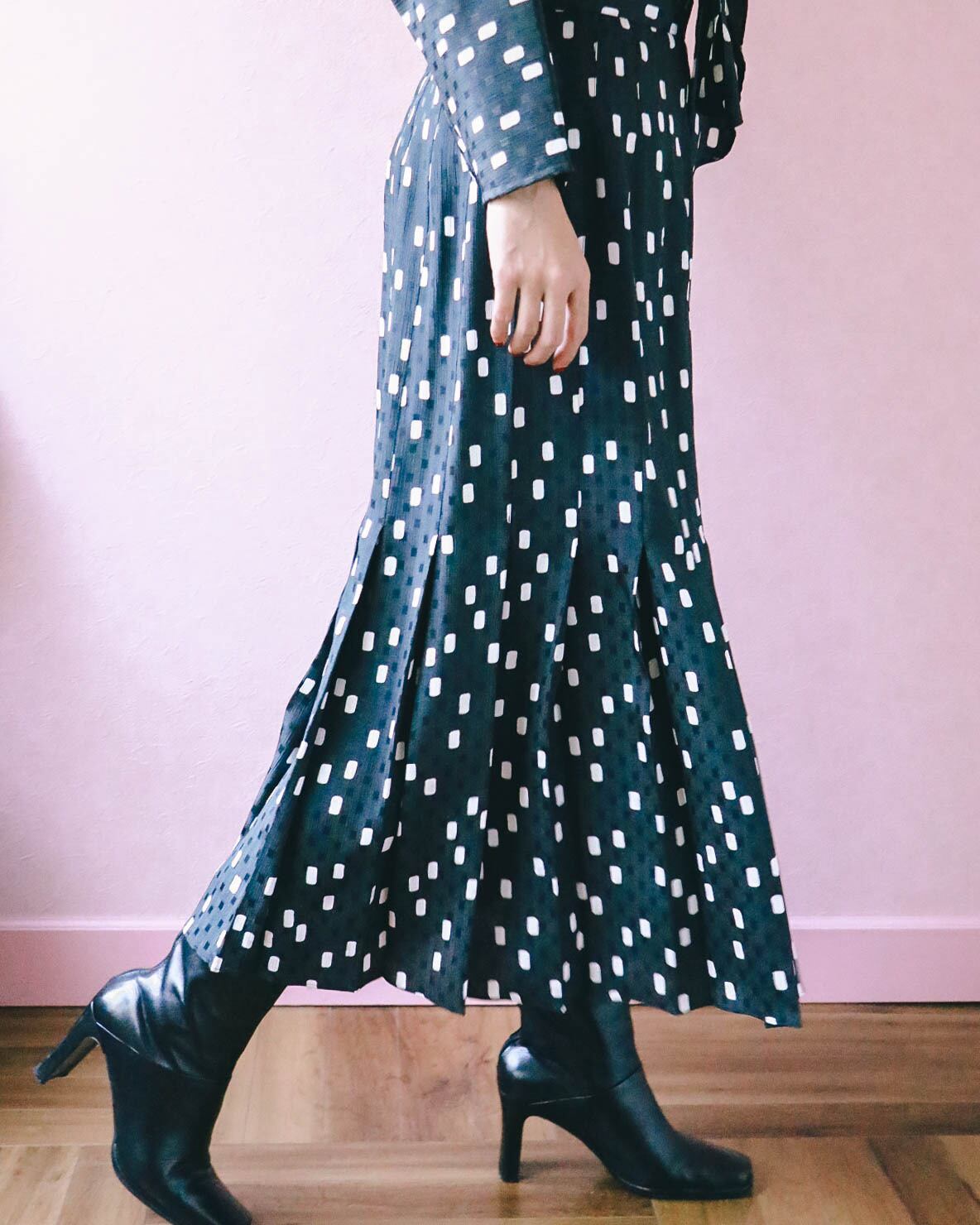 歩くたびに上品に靡くスクエアドットのプリーツスカート