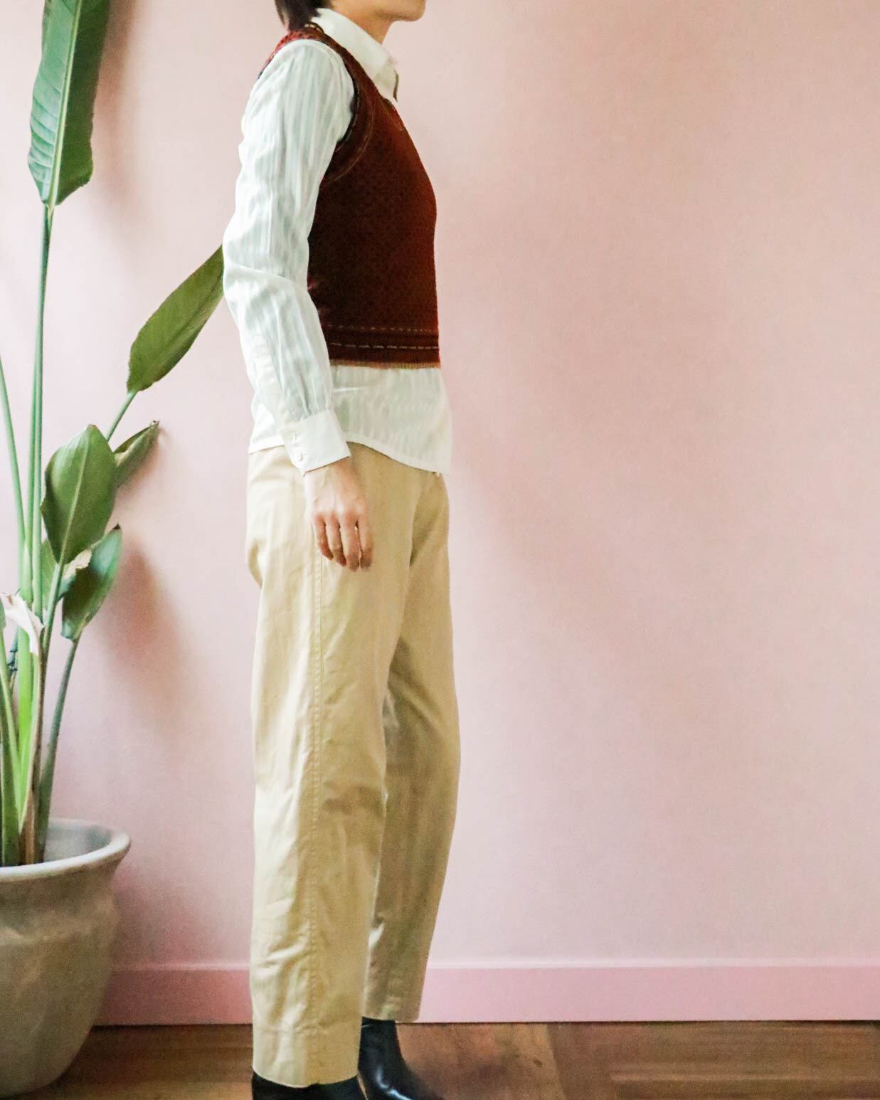 合わせるトップス次第で、マスキュリンにもフェミニンにも着こなせます。