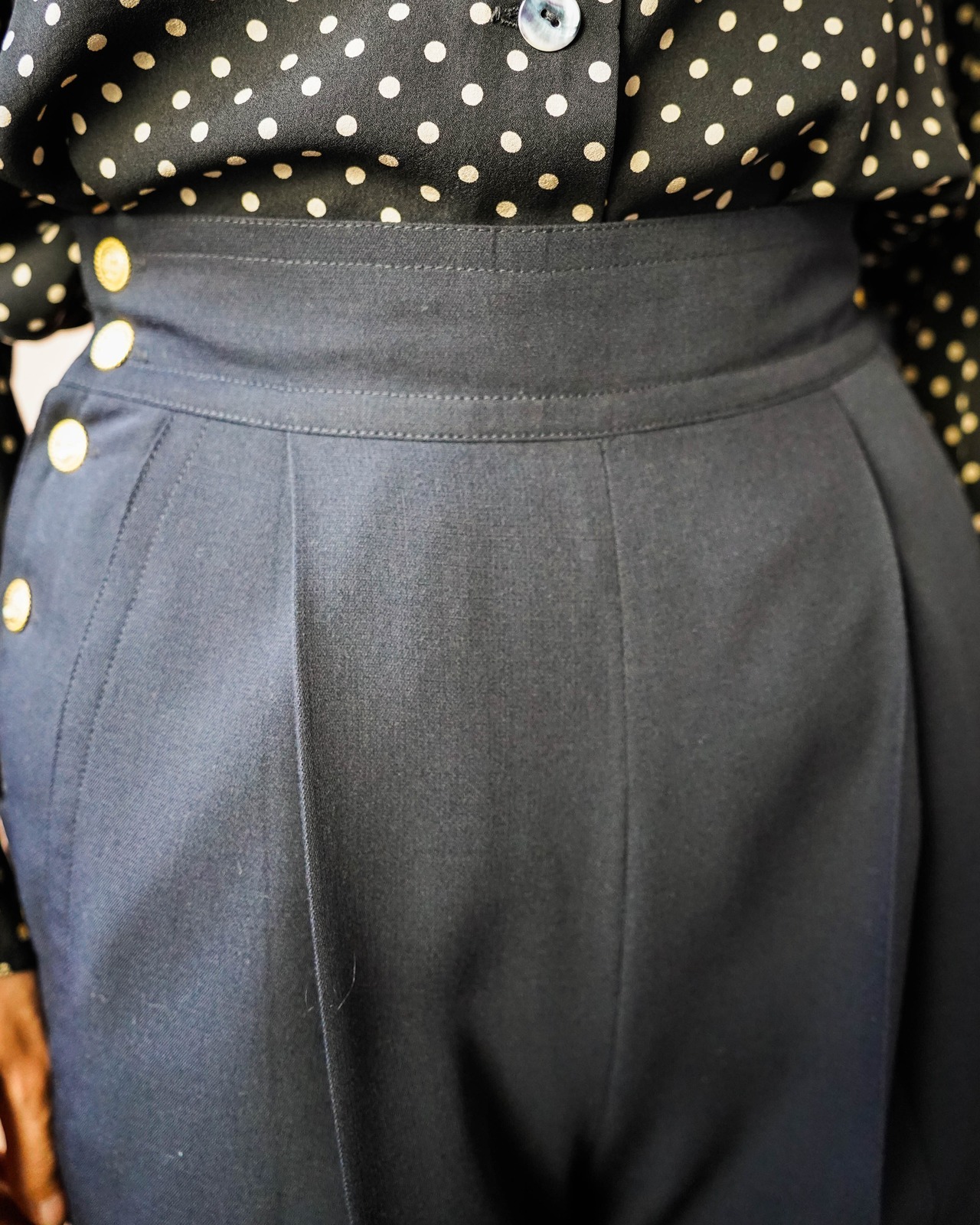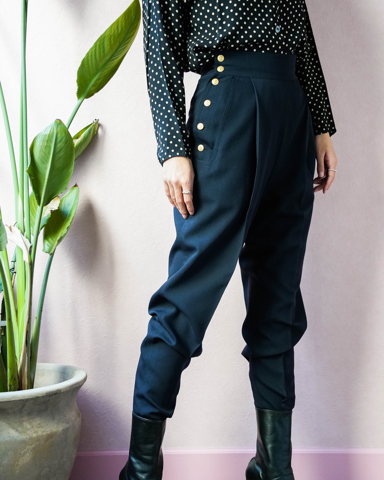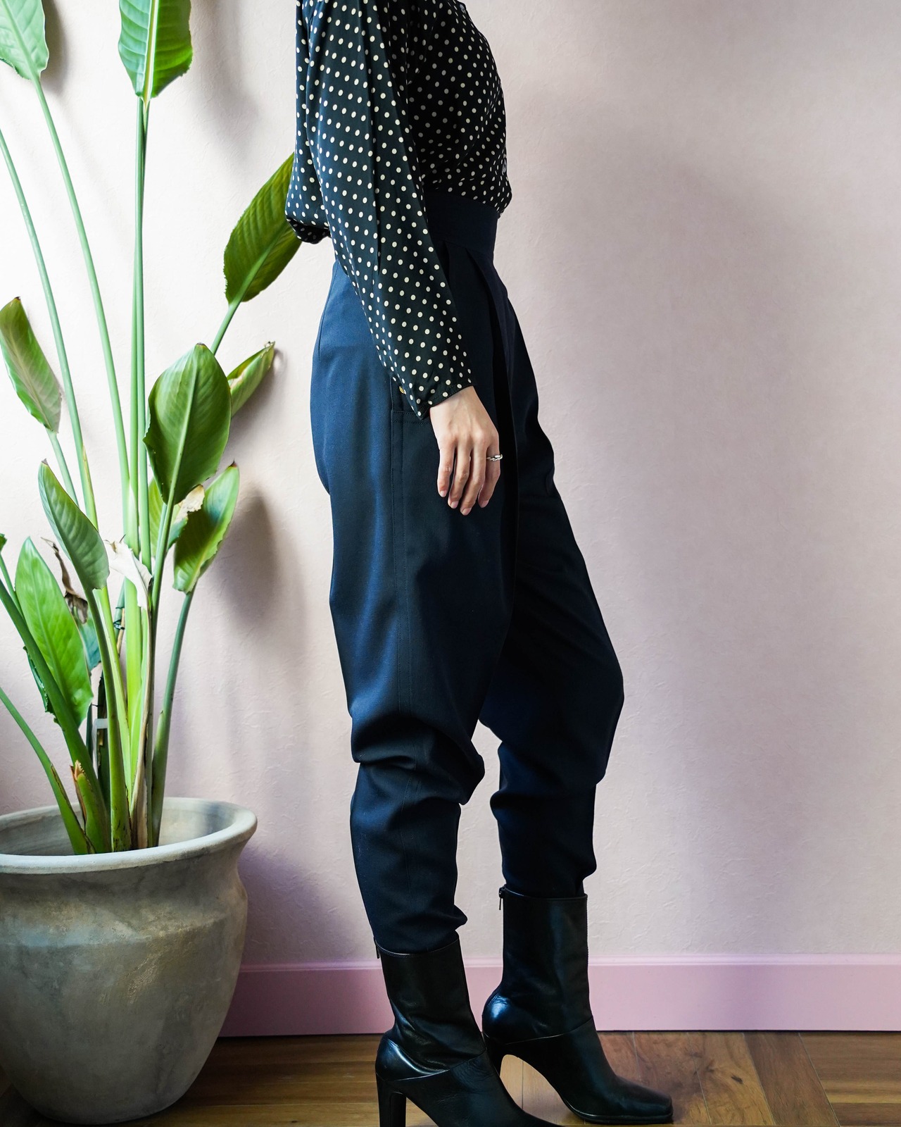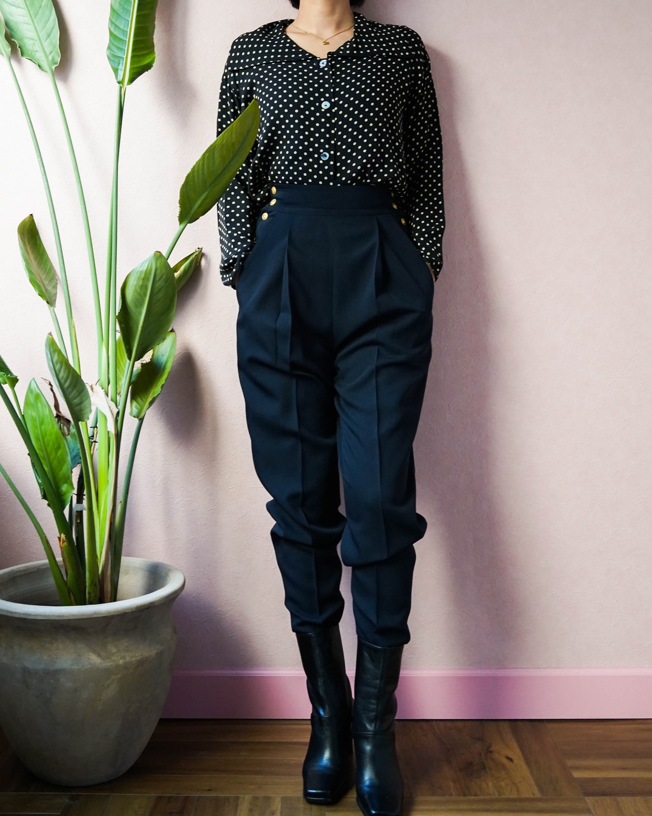 爽やかな気品漂うネイビーカラーのハイウエストパンツ。