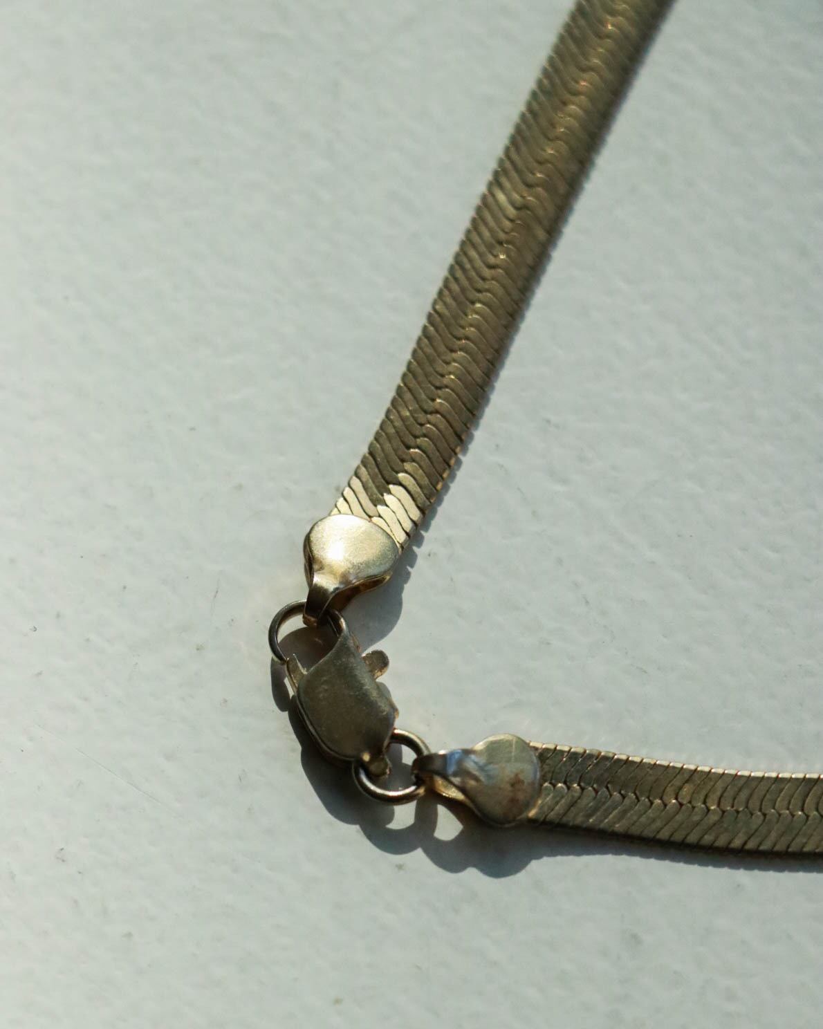 フラットなデザインのスネークチェーンはシンプルながら存在感も抜群です