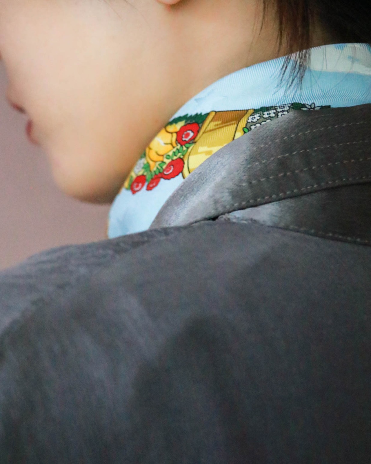 写真のようにベルトのようにぐるりと巻いたアレンジもおすすめ。