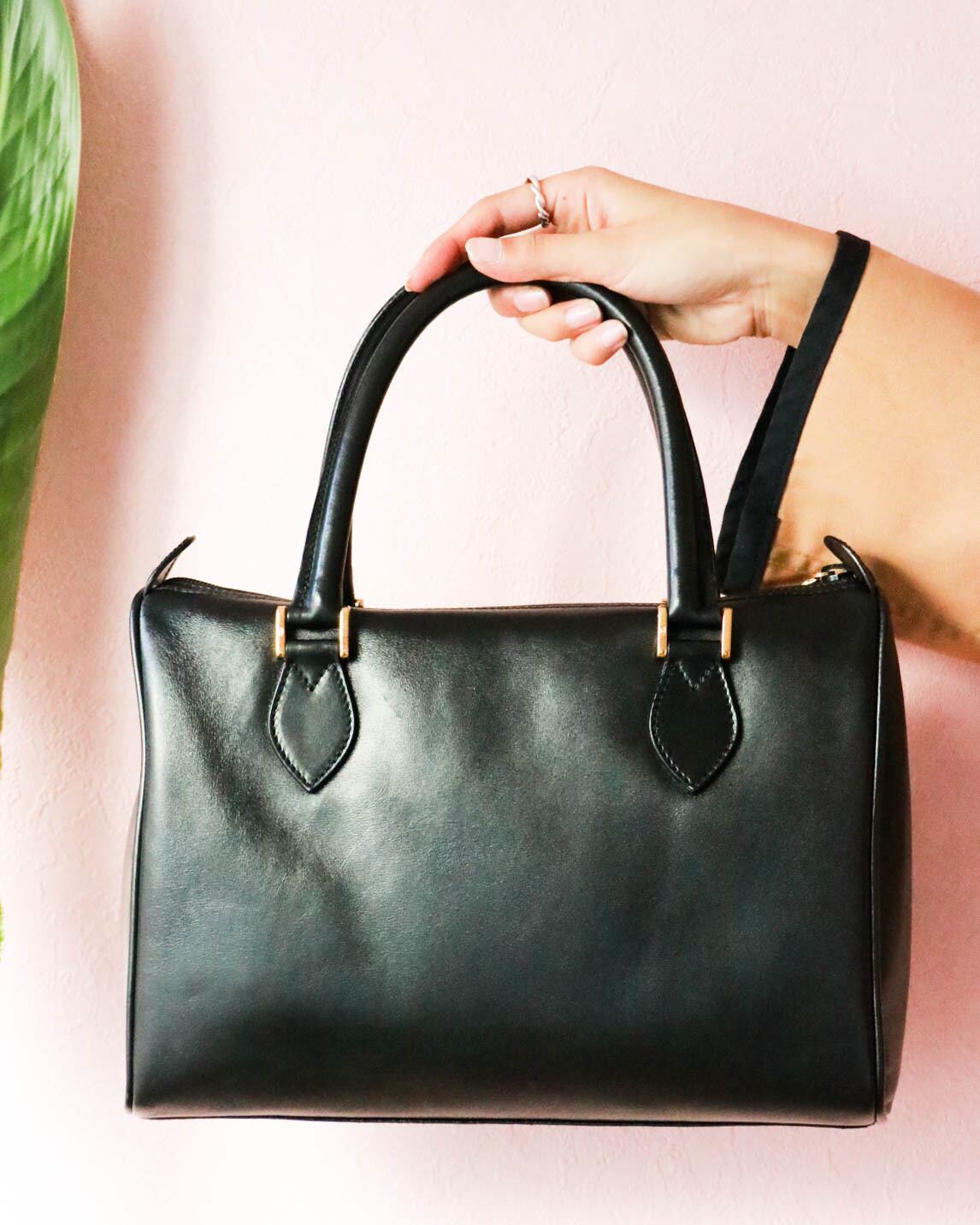 重厚感がありながらも細幅のマチと華奢なハンドルが軽やかにそして品よくみせます。