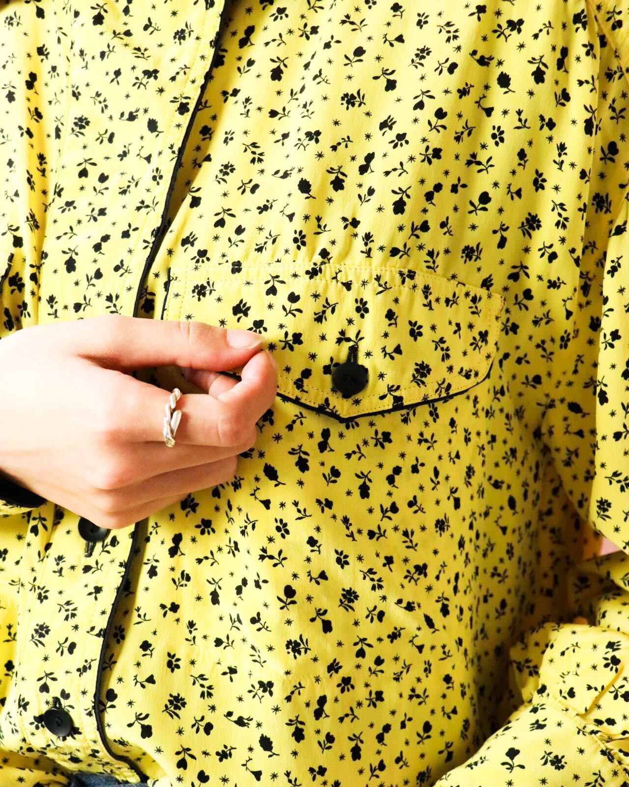 こちらは、春めくイエローカラーが目を惹くESCADAのシルクシャツです。