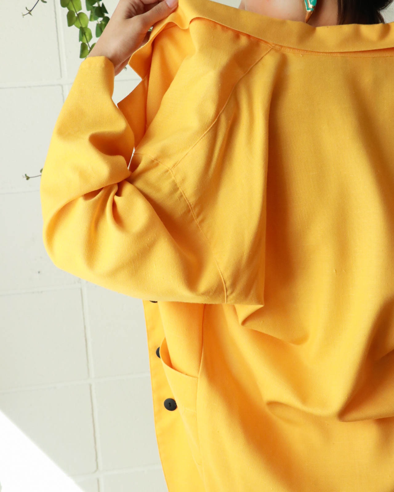 イエローベースにブラックボタンが上品なアクセントを与えます!