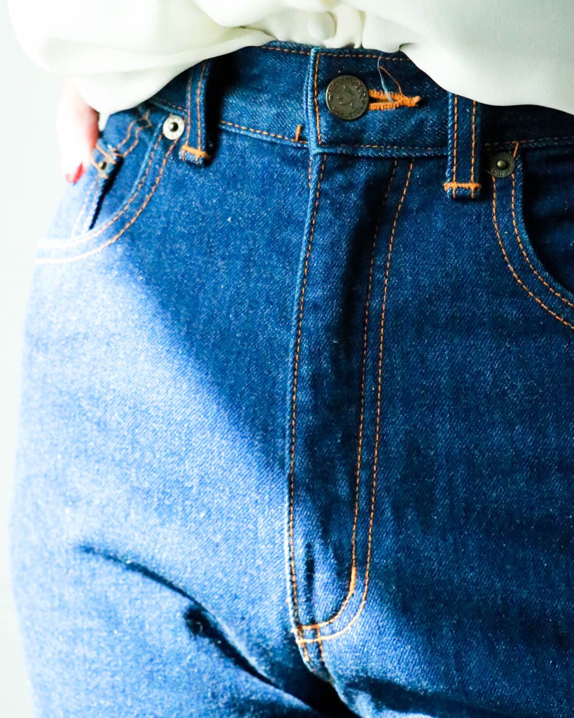 すとんと落ちたきれいなストレートシルエットがレッグラインをきれい且つ足長に見せてくれます。アイコンのピースマークがヒップに貼り付けられたところもかわいいのでトップスインも楽しみたい。