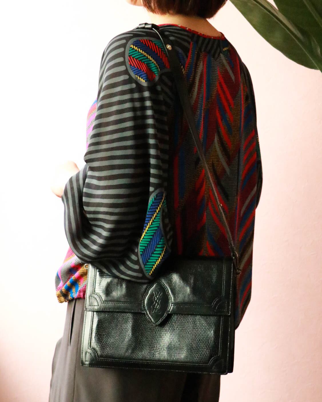 型押しレザーはスクエアシルエットとの相性がよく、フロントのYSL型押しロゴもさり気なく品のある雰囲気を醸しだします。ほどよいサイズ感が服を選ばず、ショルダーベルトはボタンで調節してハンドバッグとしても使えるので、様々なオケージョンで大活躍できます。