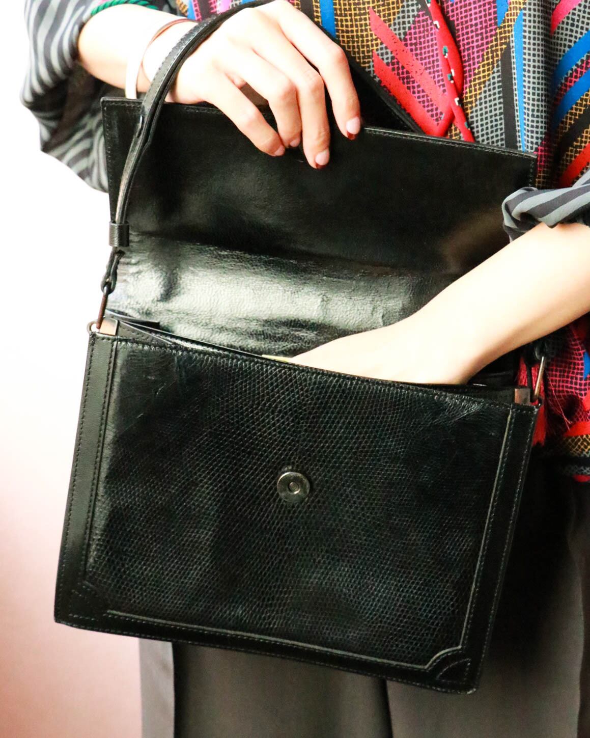 ミニマルで使いやすいイヴサンローランのブラックショルダーバッグ